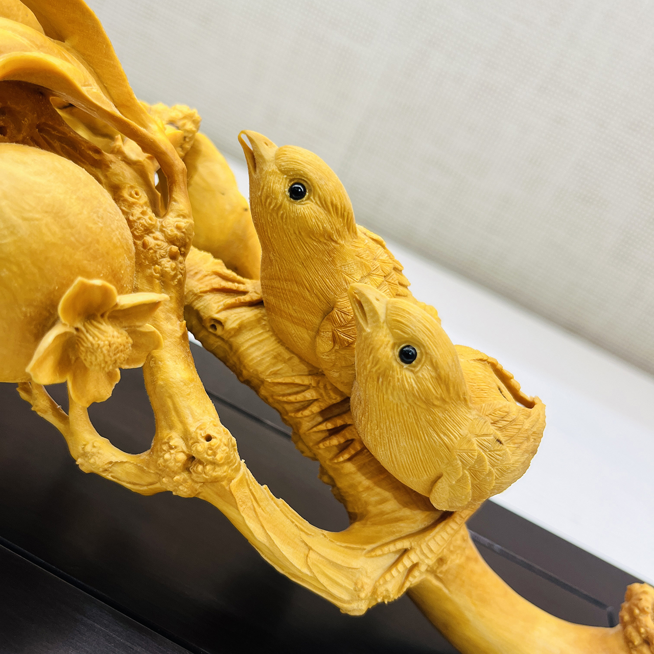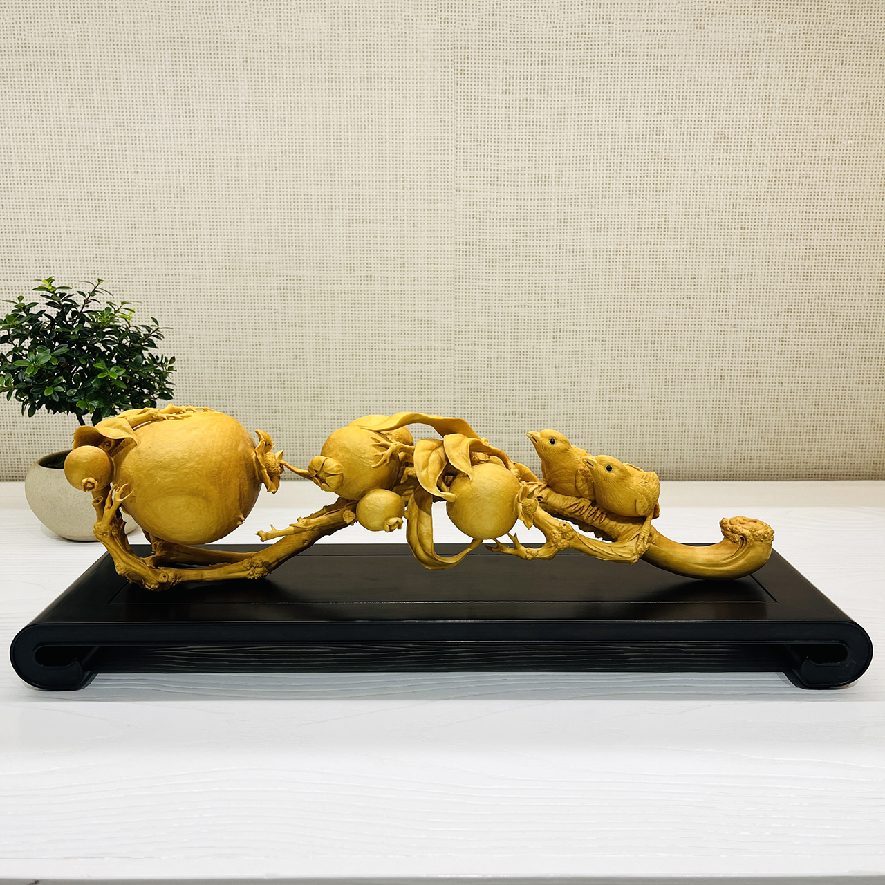 多子多福(喜鹊石榴)如意°木雕摆件