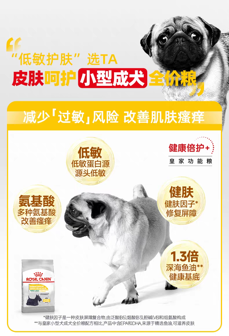 皇家 皮肤呵护小型犬成犬全价粮2kg/袋 (48内小时发货)