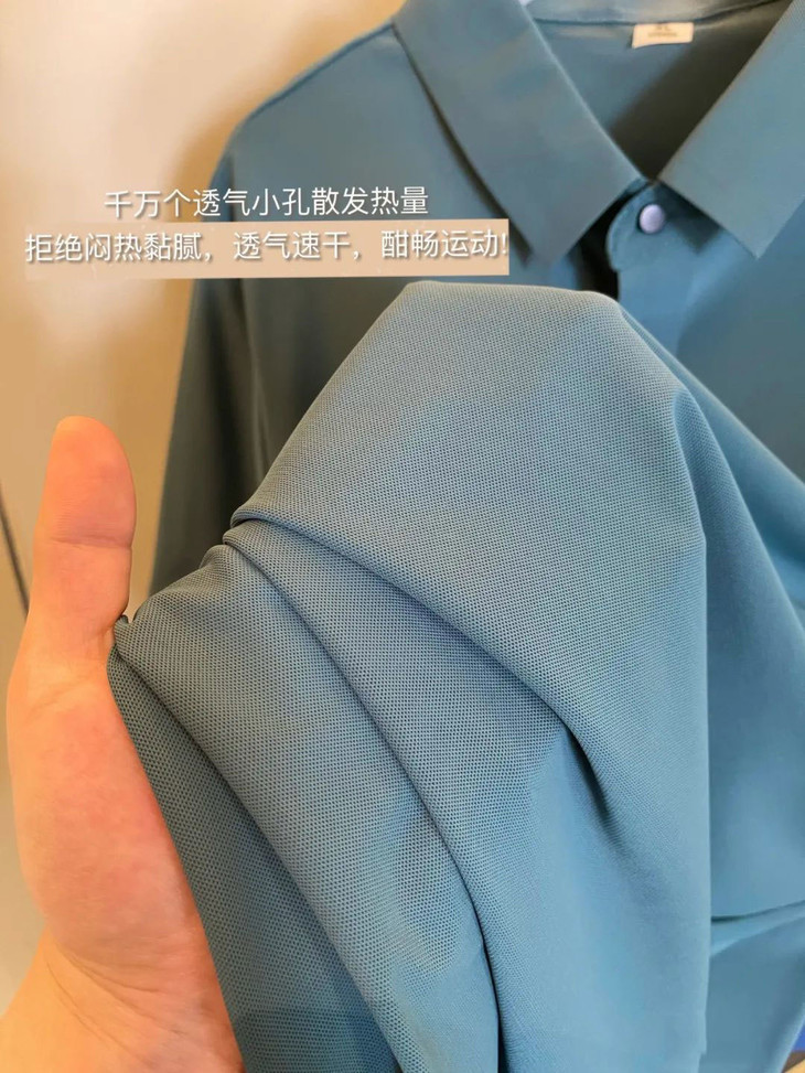 冰丝面料都是一个个透气小网眼,透气不透肉。肉眼可见的精致、细腻,夏天穿超级合适。