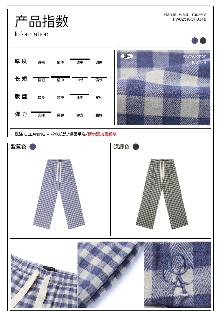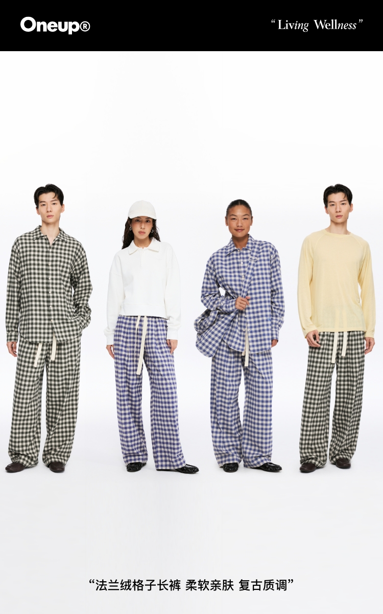 oneup法兰绒格子长裤(男女同款)