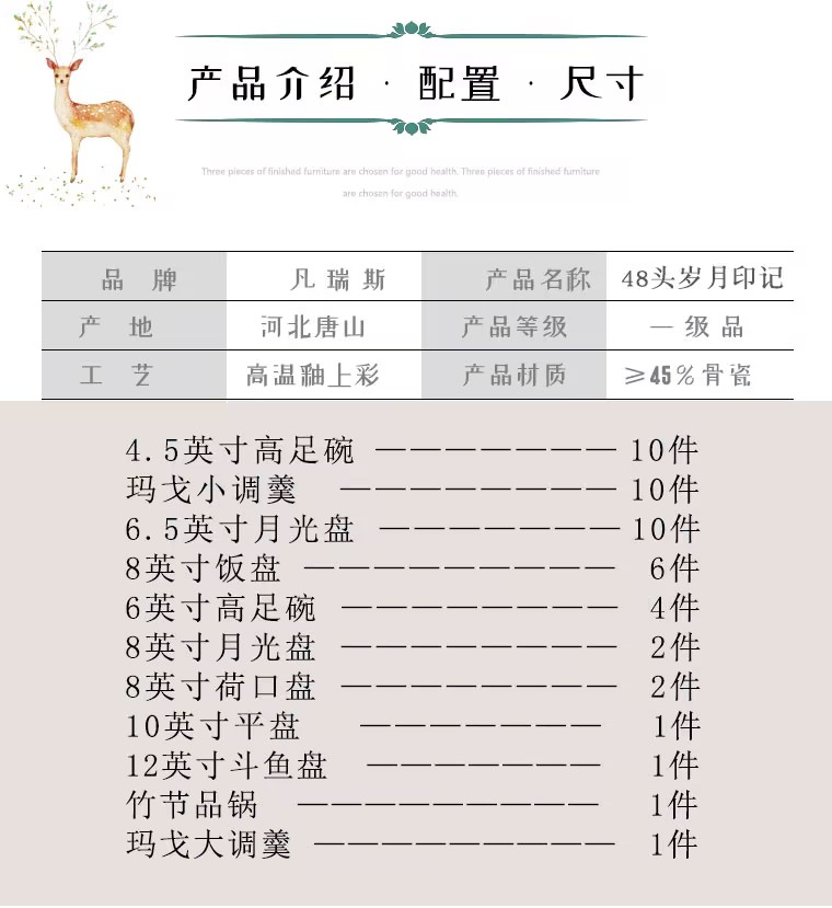 凡瑞斯岁月印记48头10人用骨瓷餐具