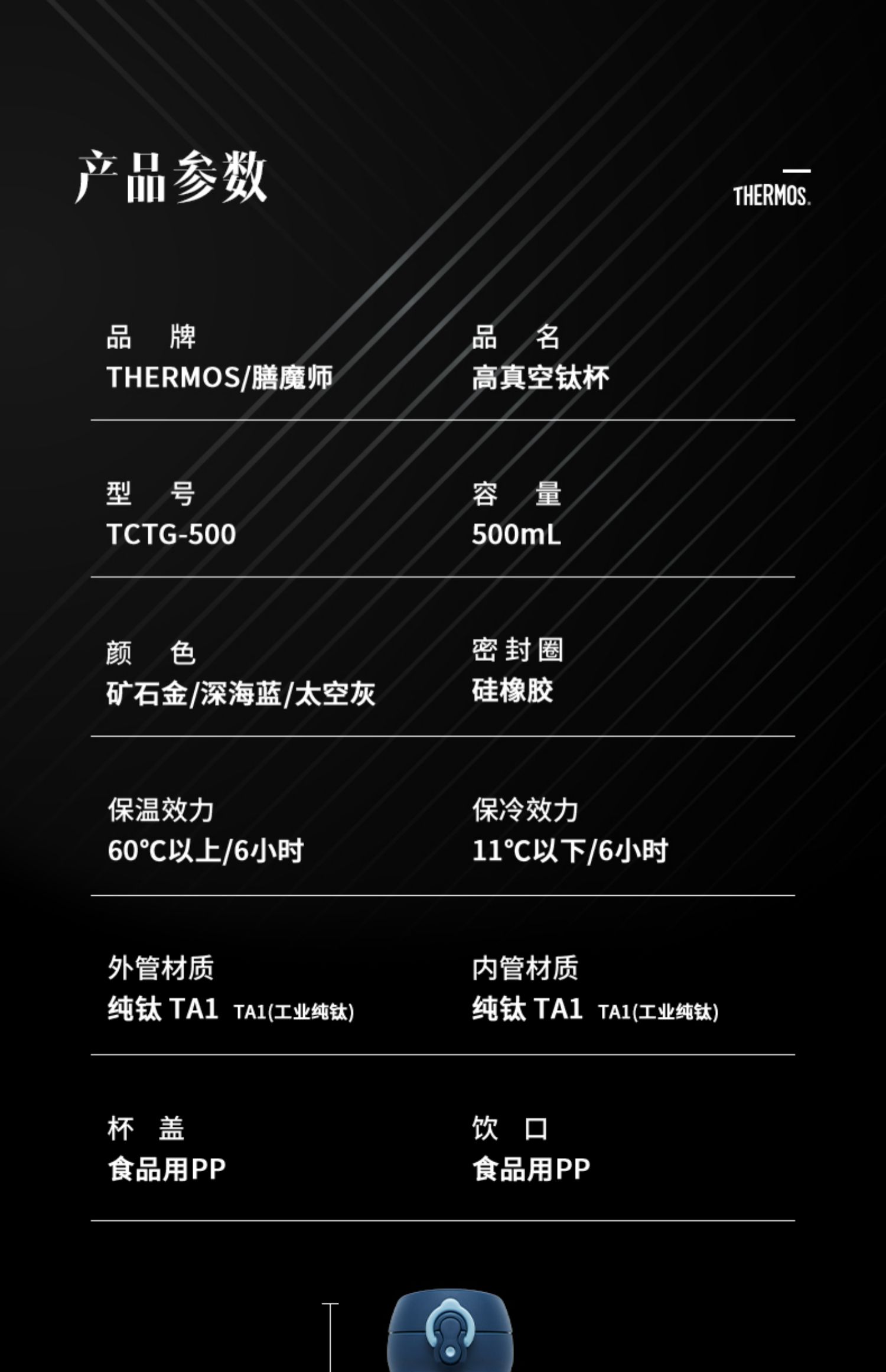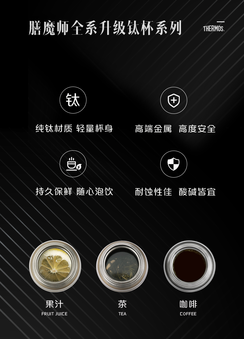 膳魔师THERMOS 纯钛保温杯高档商务抑菌茶杯超轻钛杯TCTG-500