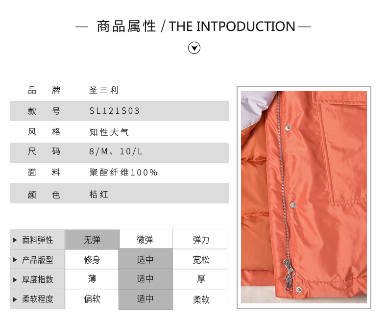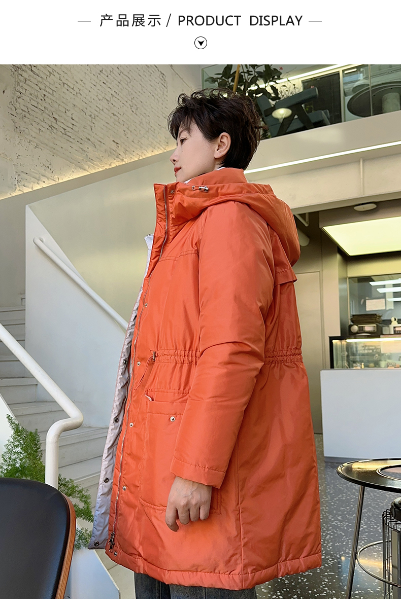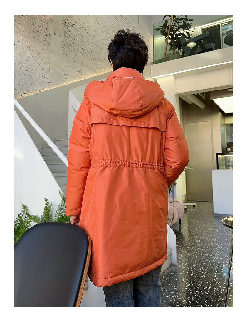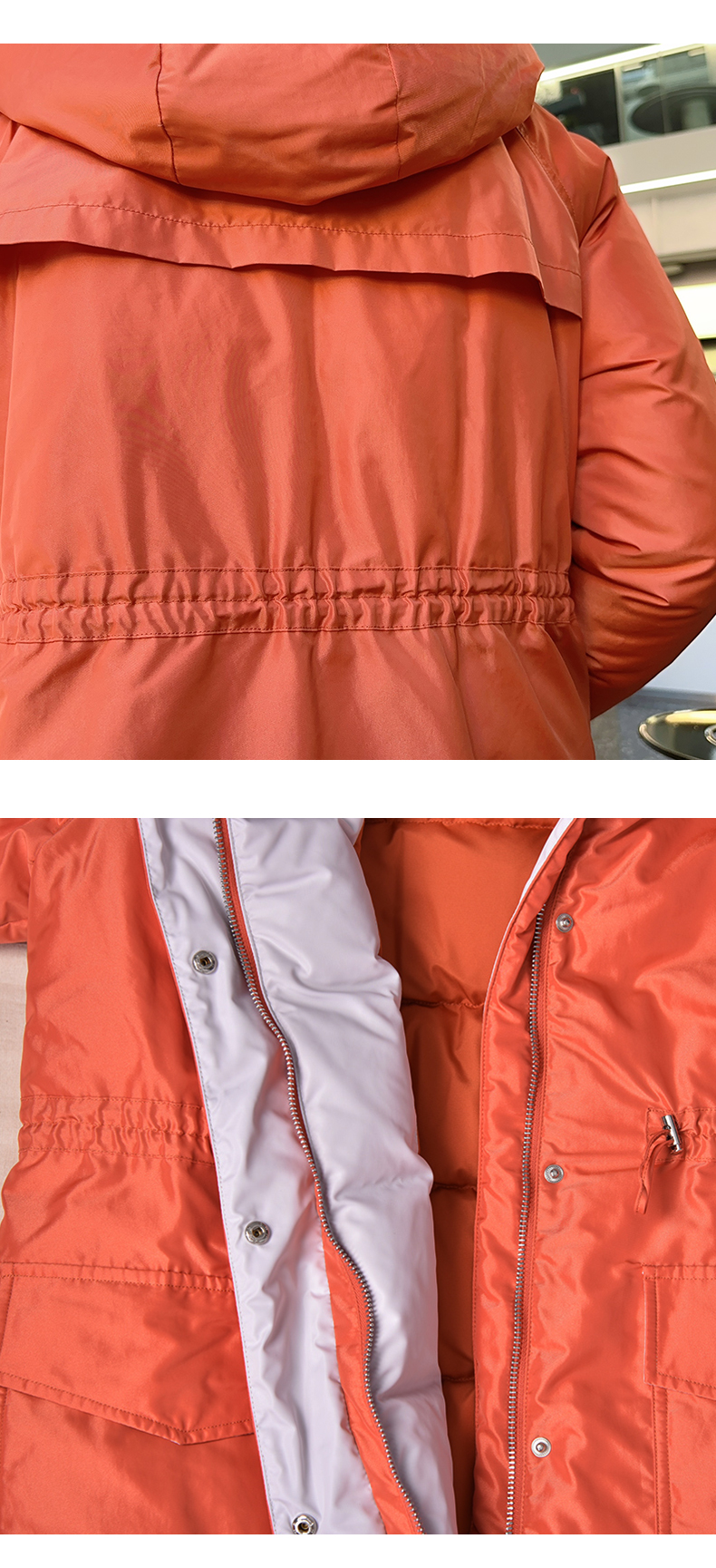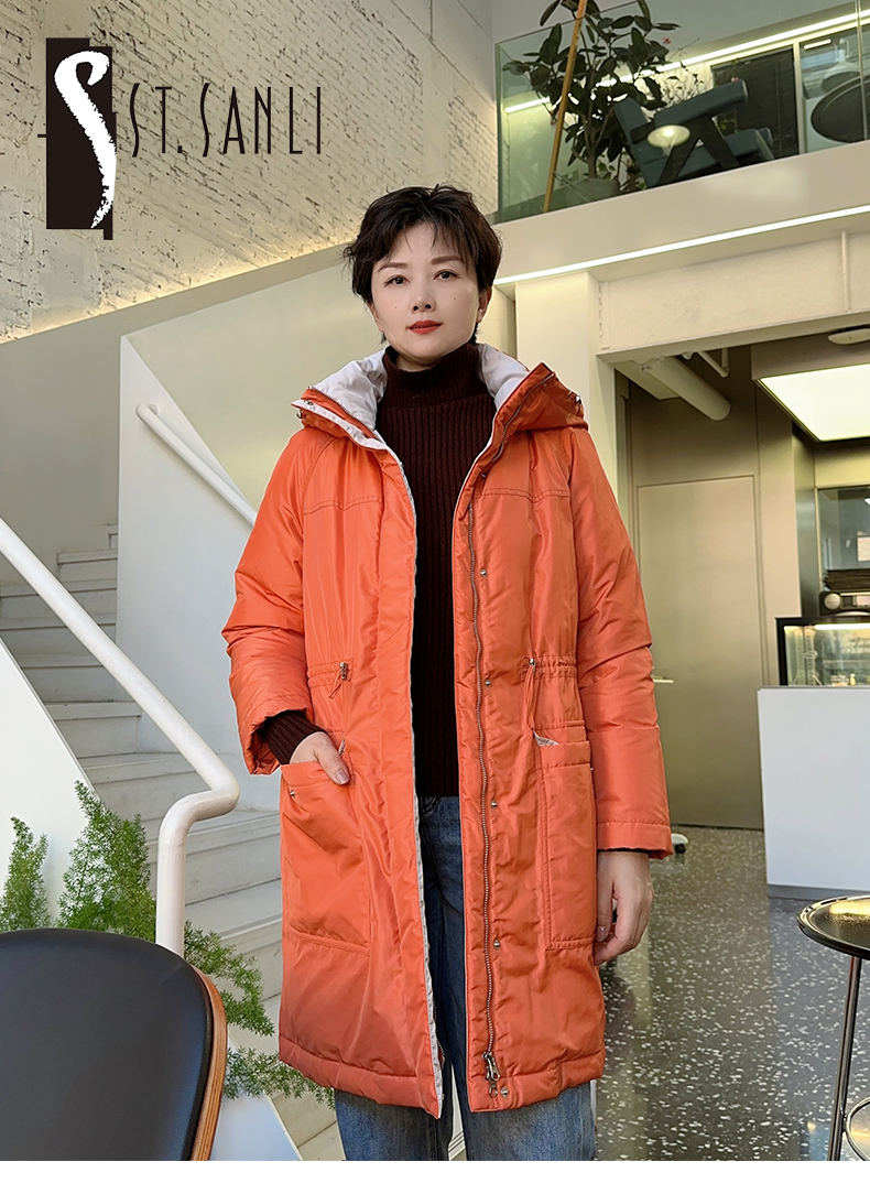 圣三利女装新秋冬季连帽休闲桔色中长款羽绒服SL121S03