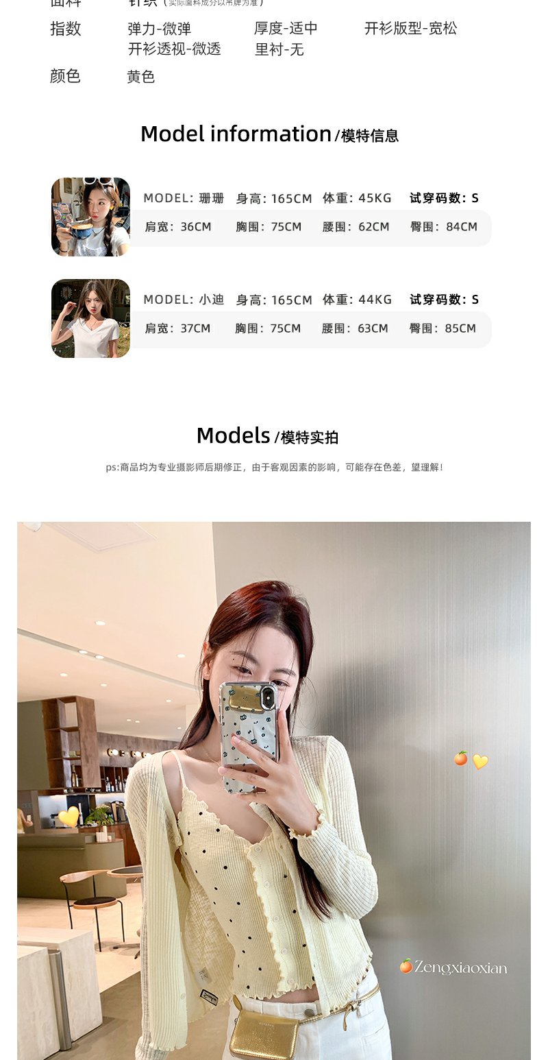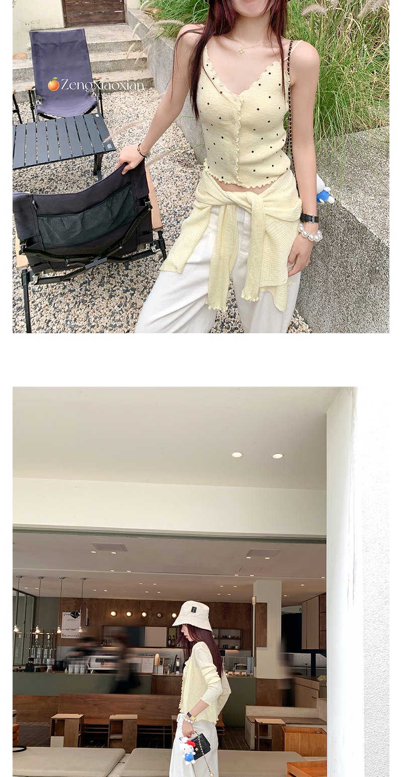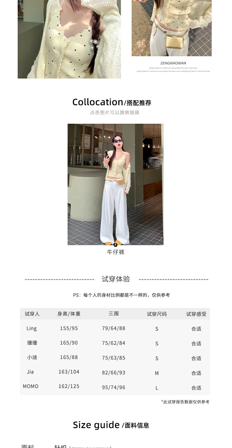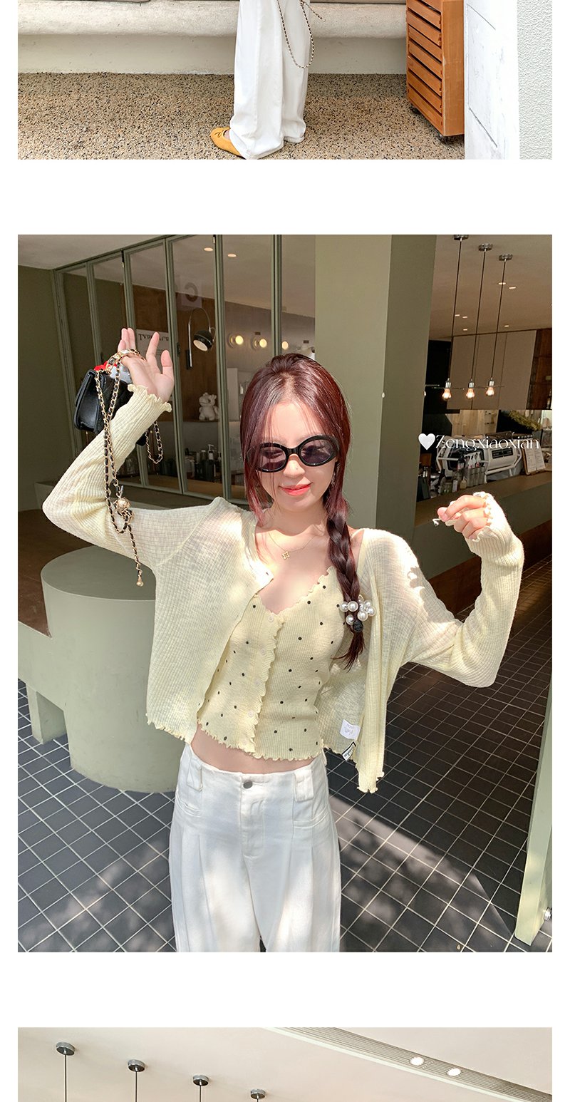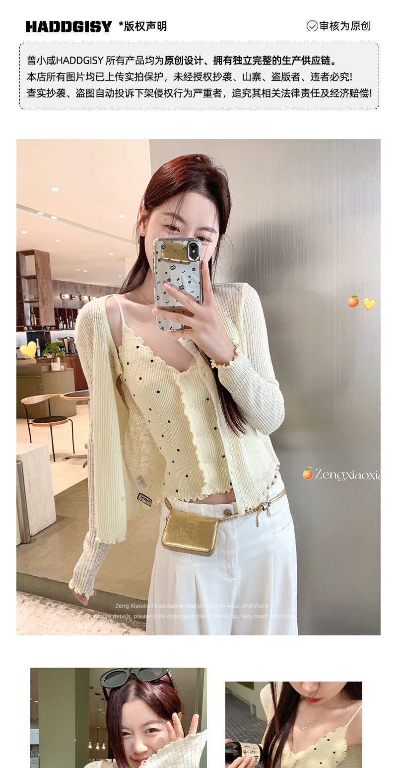 <曾小咸推荐>黄色开衫波点吊带背心针织套装