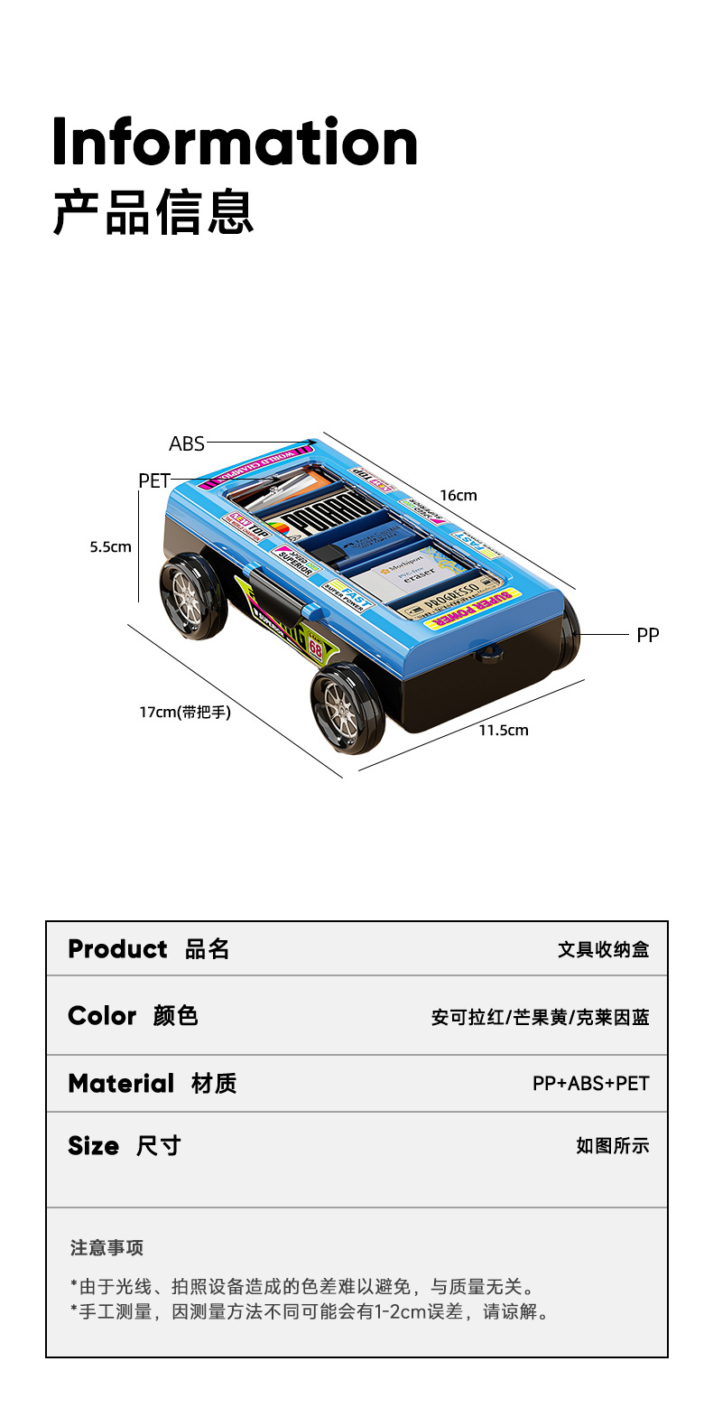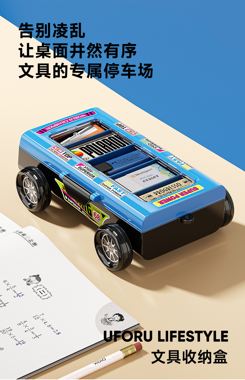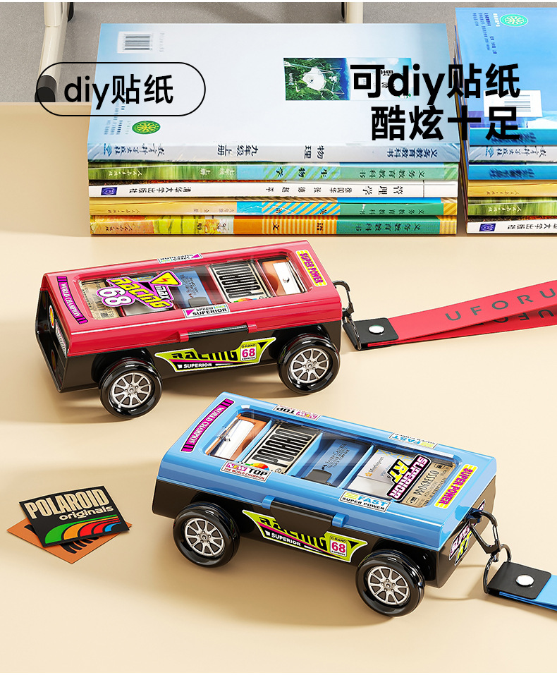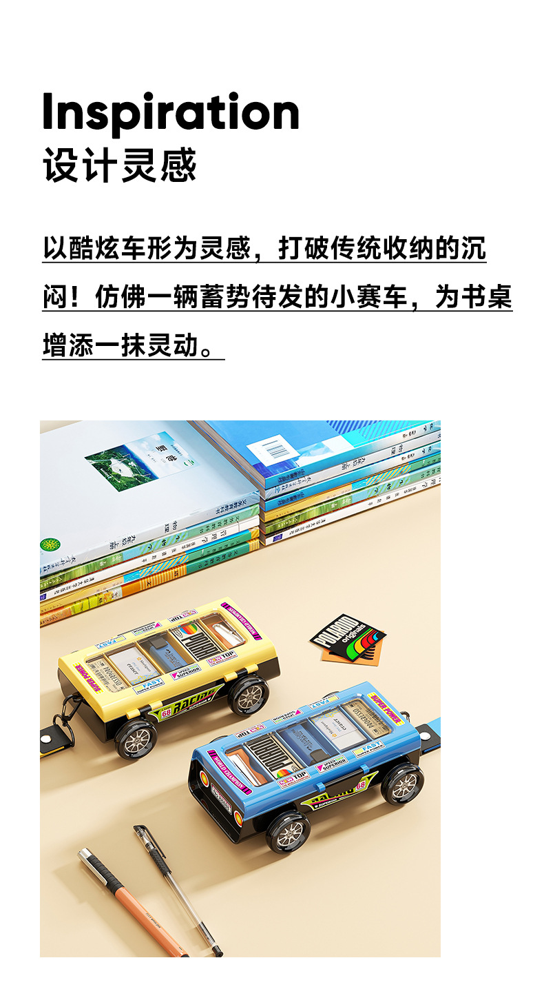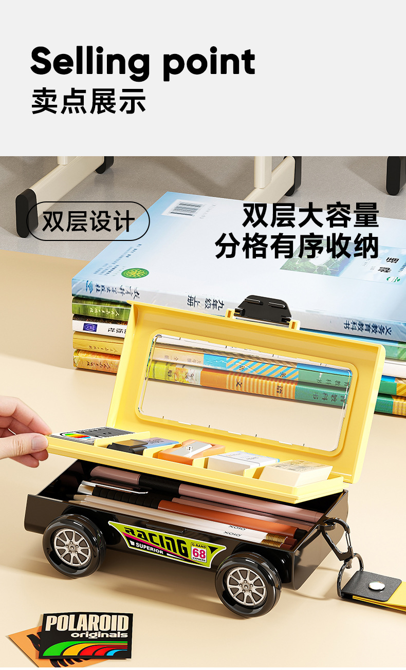 双层小学生文具盒 高颜值耐用儿童双层赛车铅笔盒 多功能学习用品收纳盒 收纳盒