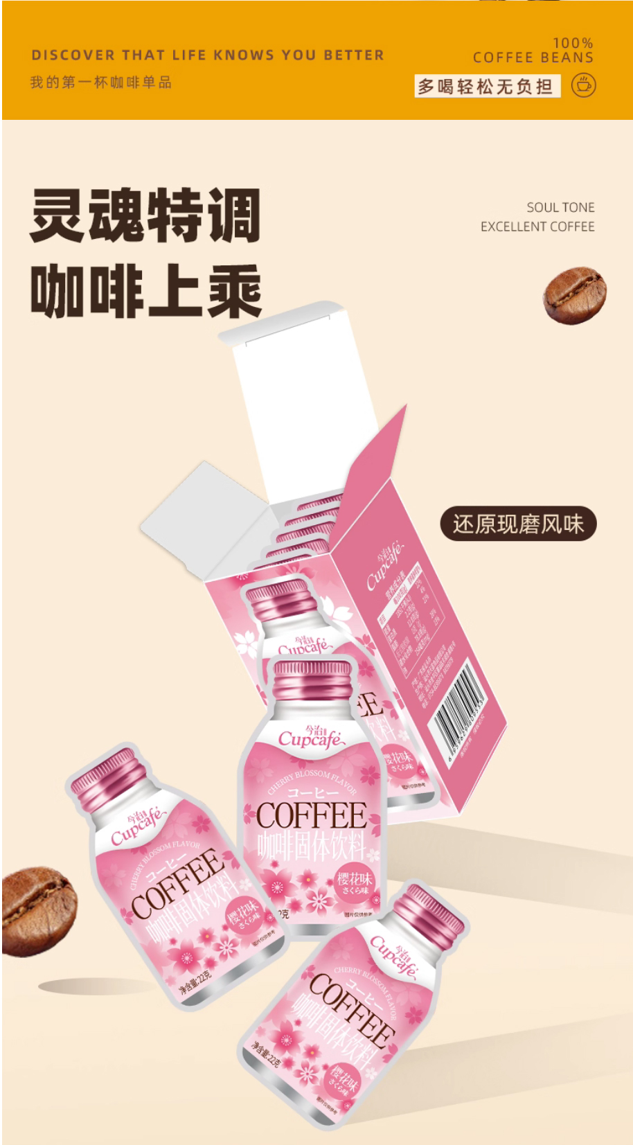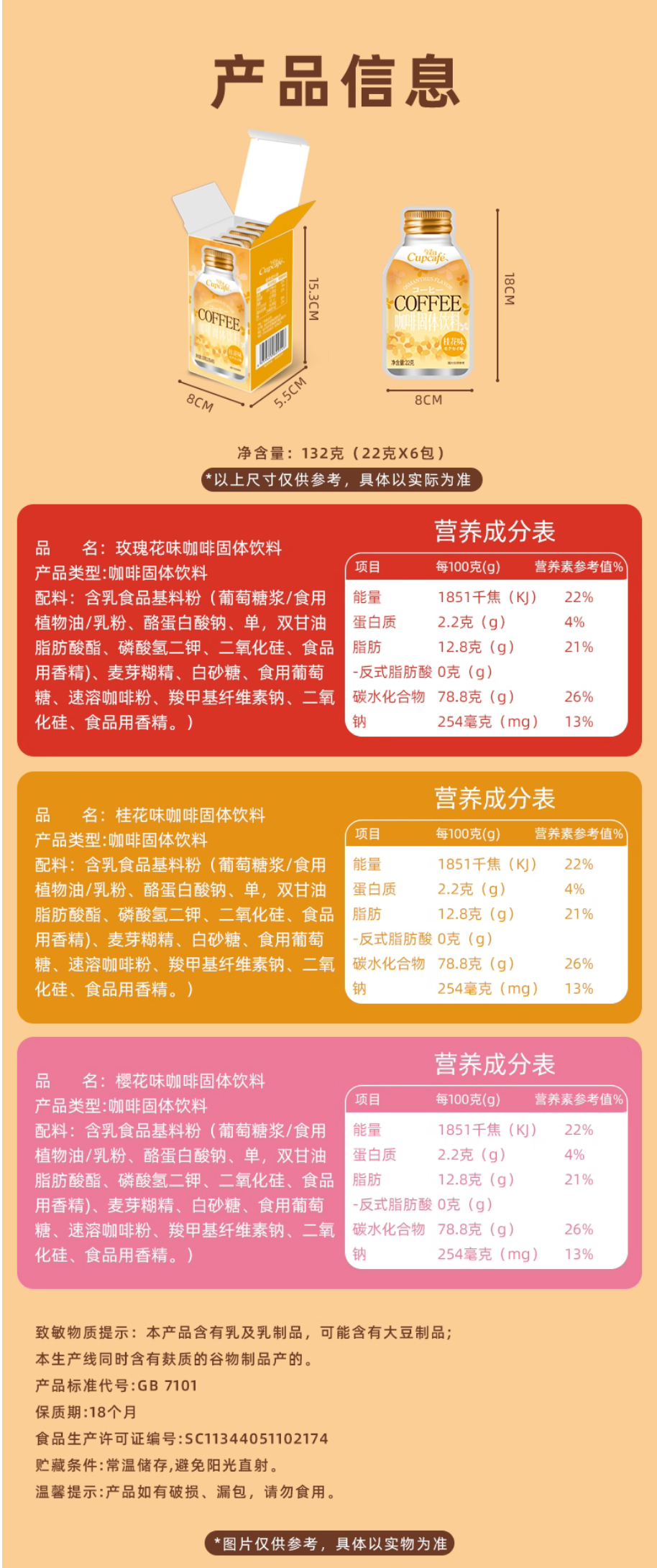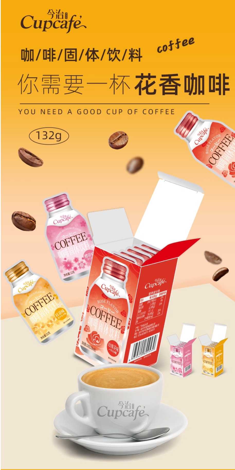 【品名】今治Cupcafe樱花/桂花/玫瑰花味花香速溶咖啡粉固体饮料22g*6/盒