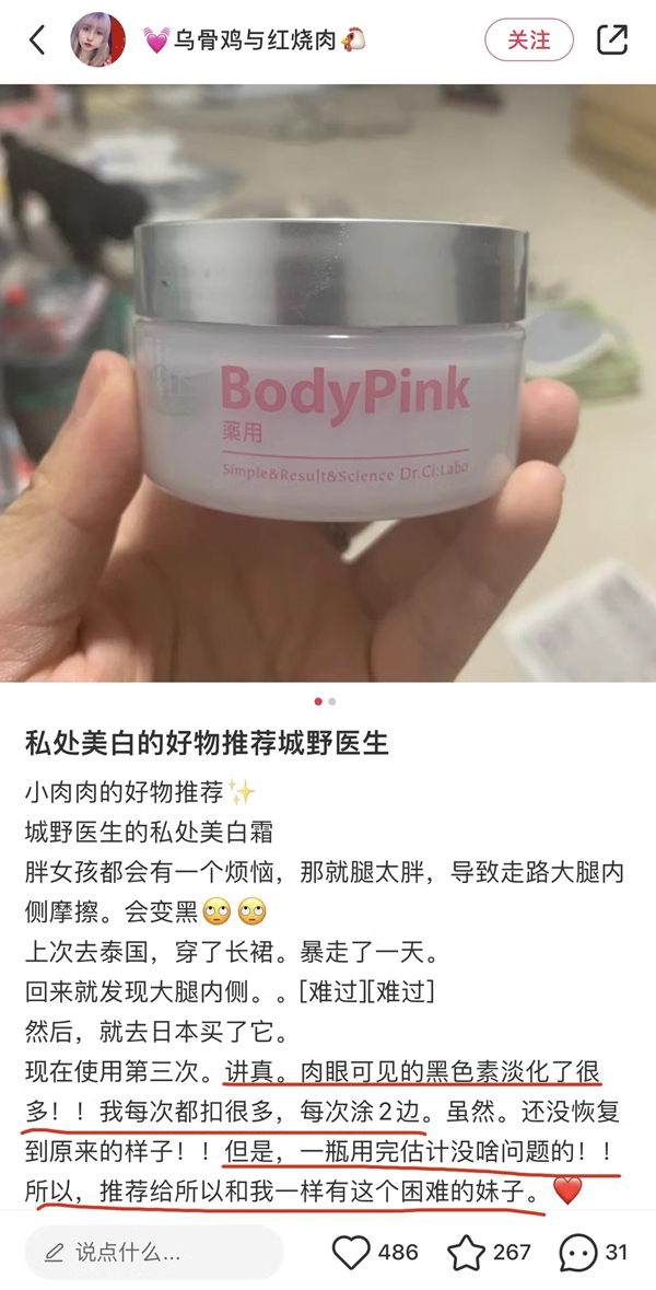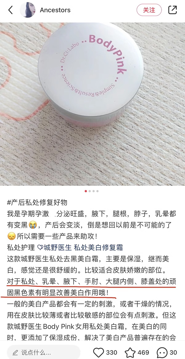 【5.15 大牌再降价】城野医生私处粉嫩美白霜50g腋下膝盖去黑(24年1月)