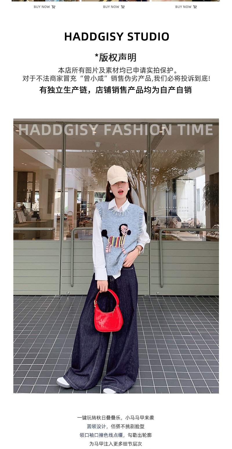 <曾小咸推荐>百搭彩色小马图案毛织马甲背心