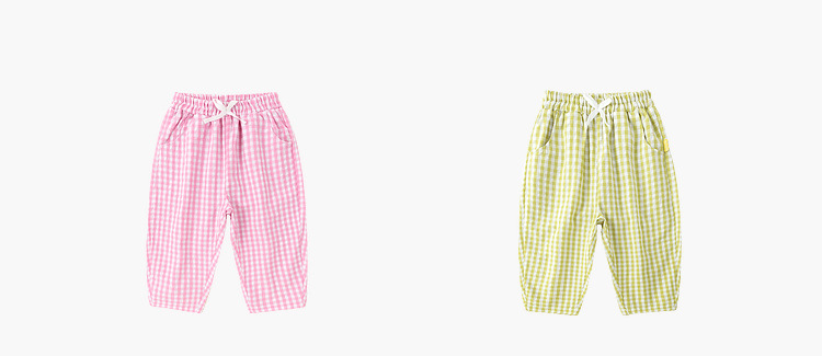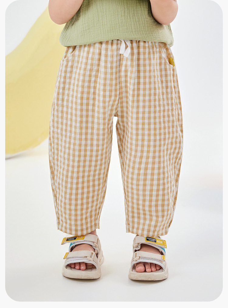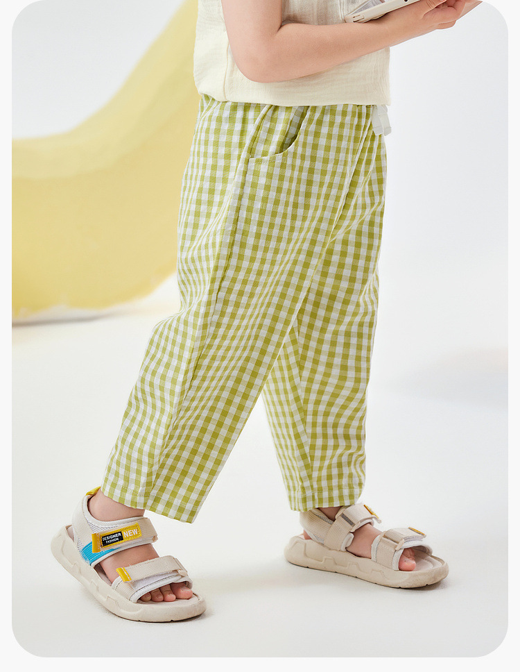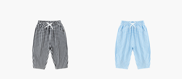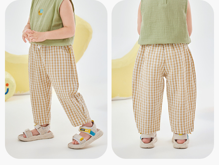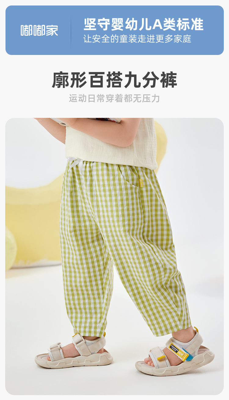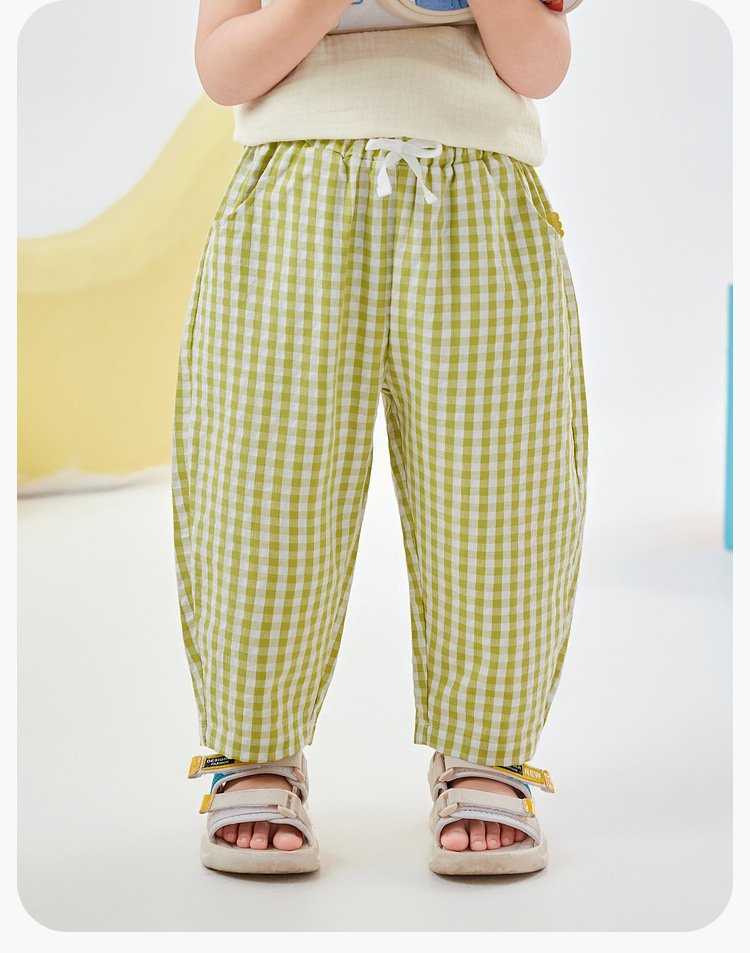 嘟嘟家儿童夏季长裤男童薄款空调裤女宝束脚针织格子裤空调裤子