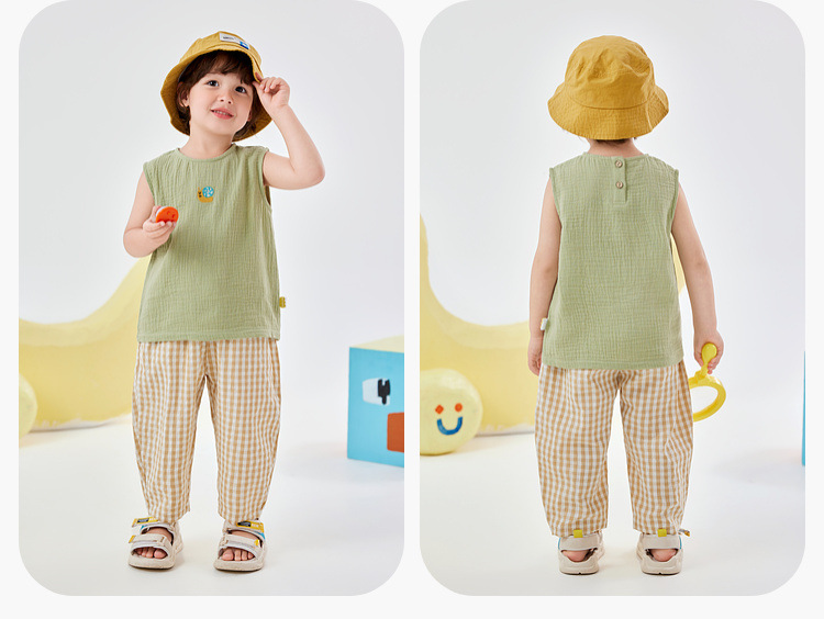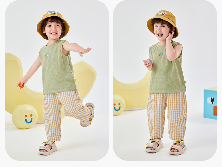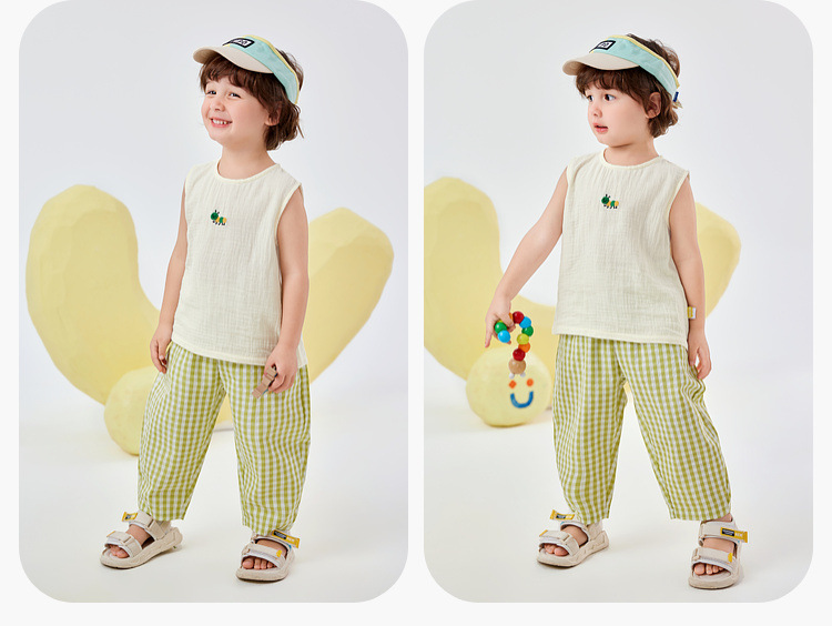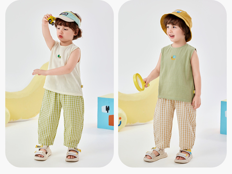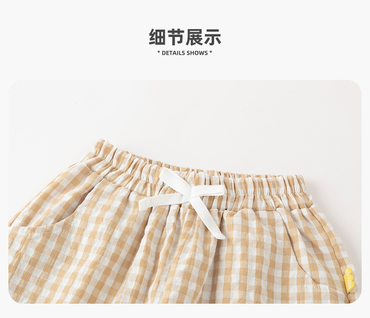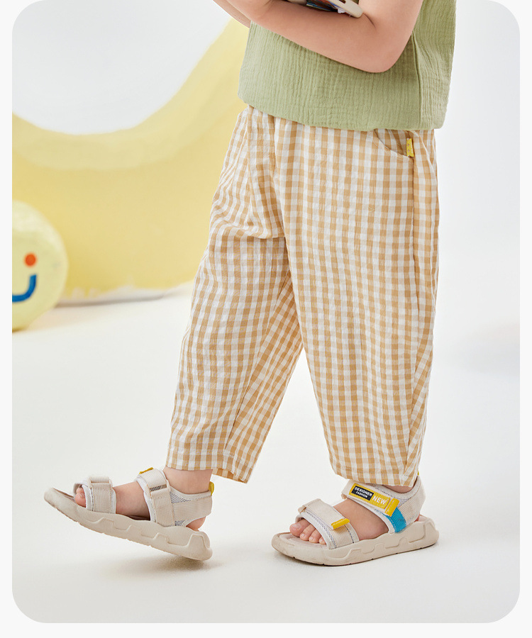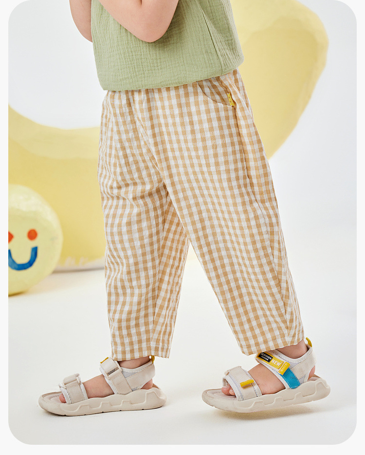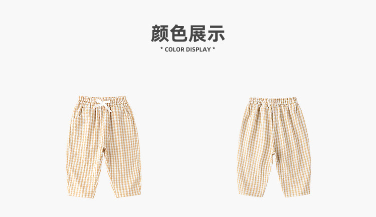 嘟嘟家儿童夏季长裤男童薄款空调裤女宝束脚针织格子裤空调裤子