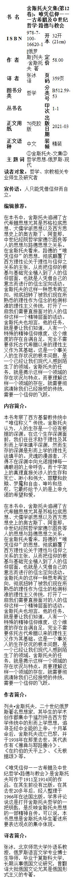 舍斯托夫文集(第12卷):唯凭信仰———古希腊及中世纪哲学·路德与教会