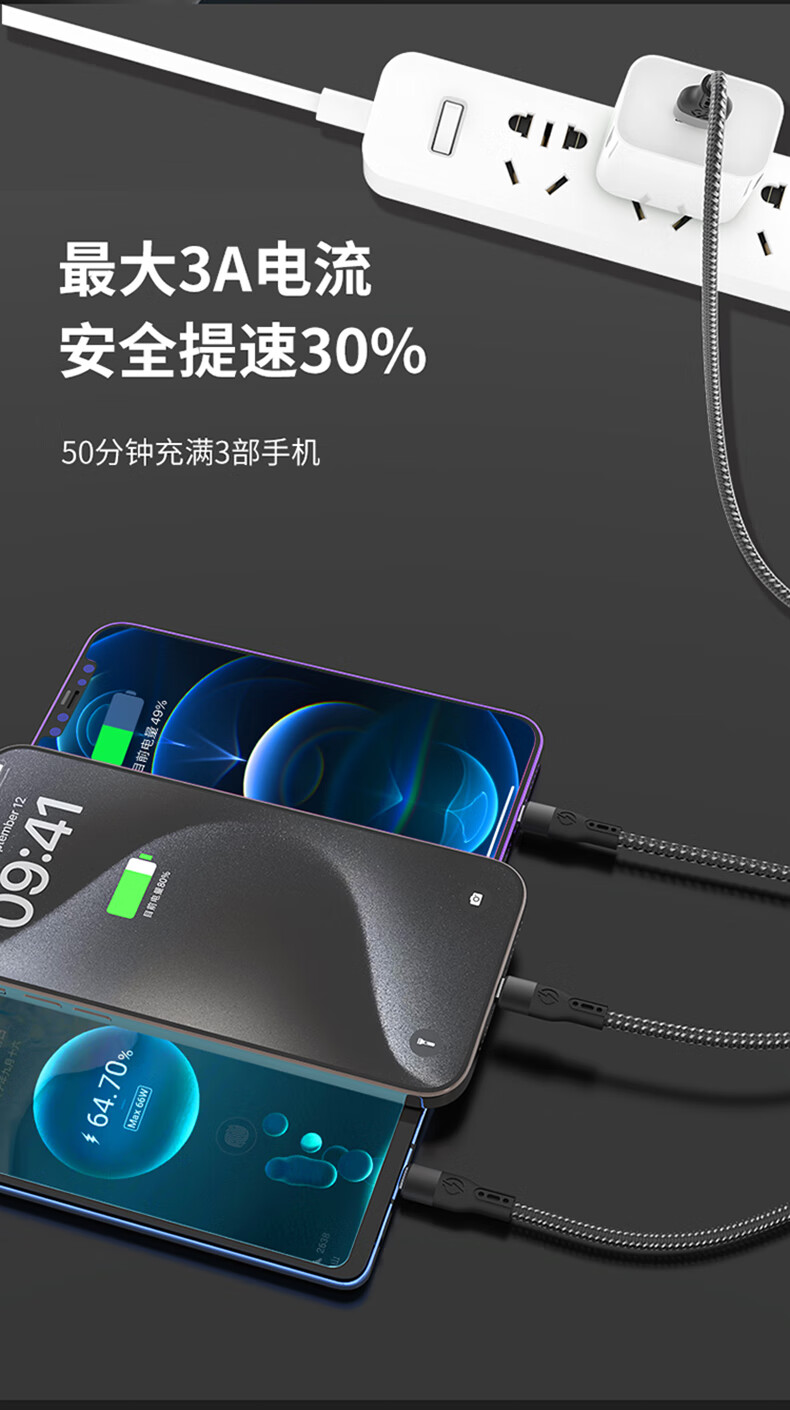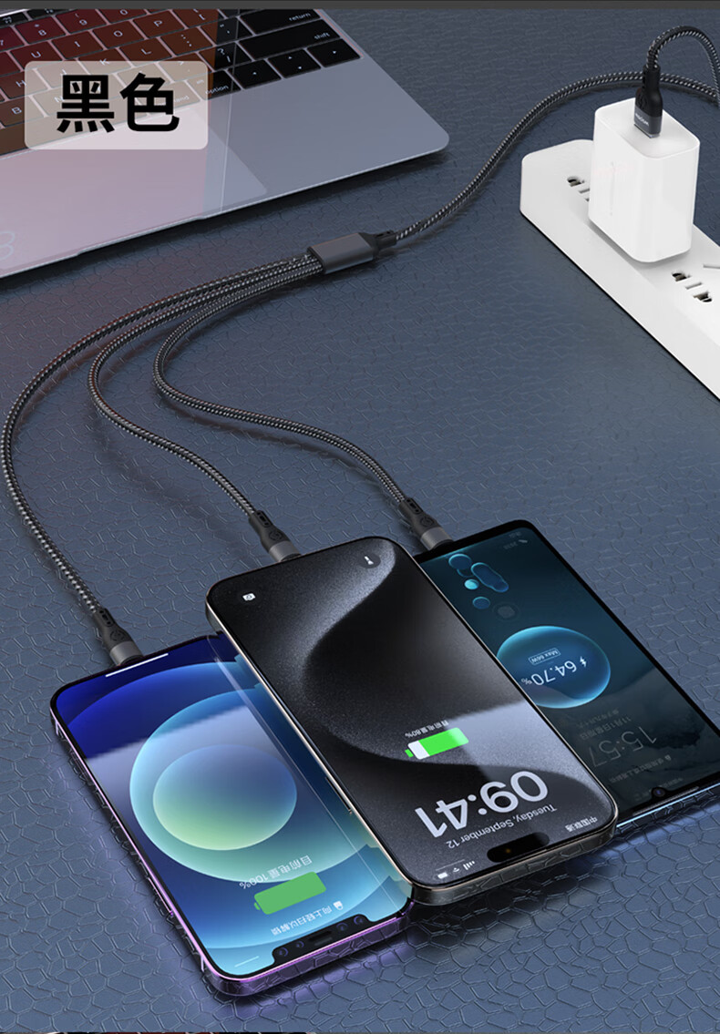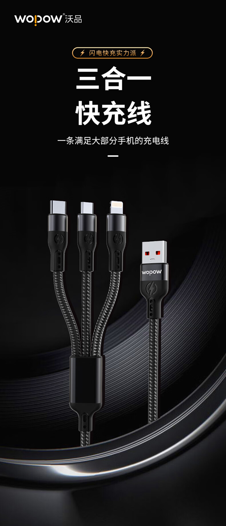 沃品WOPOW一拖三数据线1.2米适用于华为苹果安卓LC026