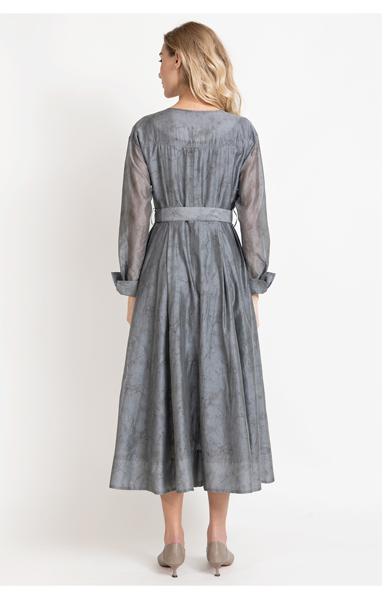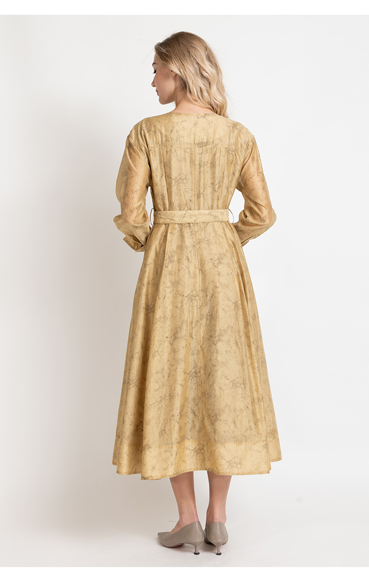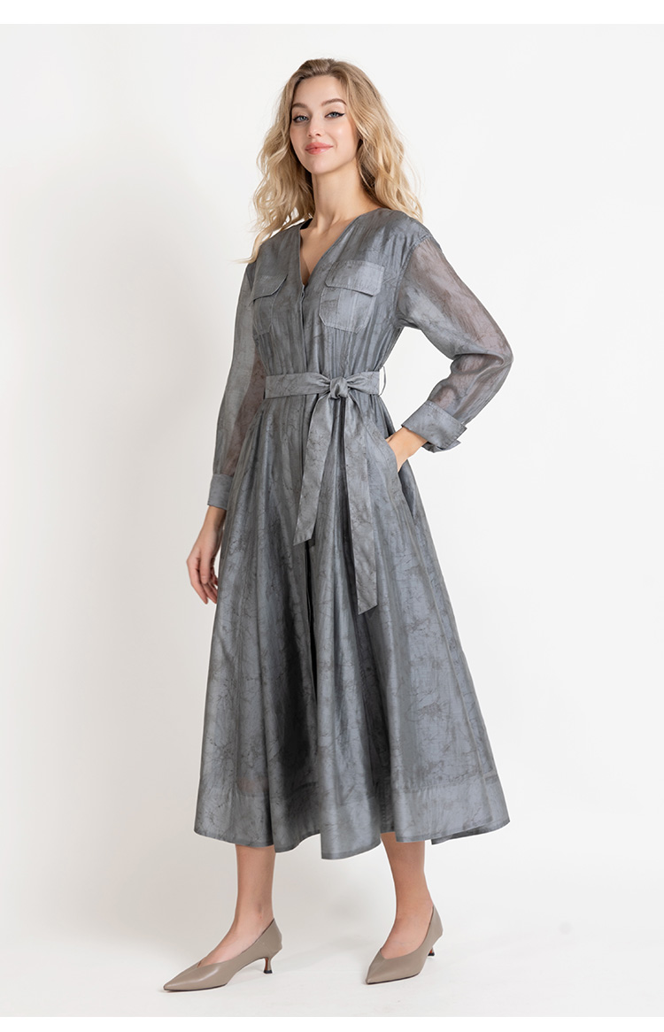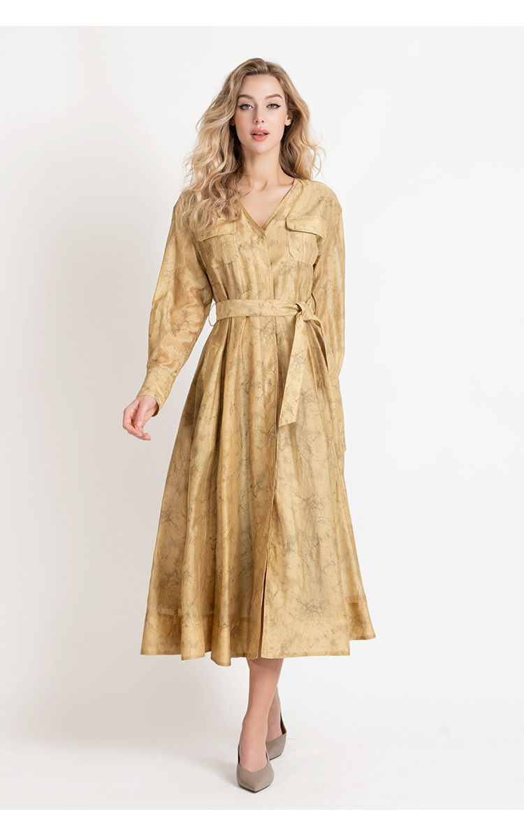 LIZZY法式优雅手绘印花工装风高级感气质V领大摆连衣裙8025