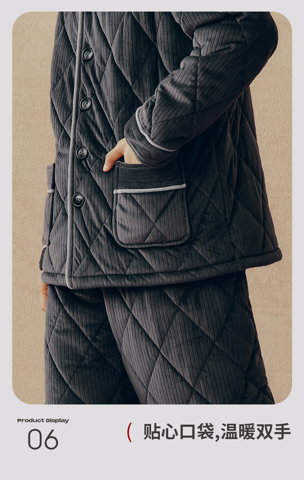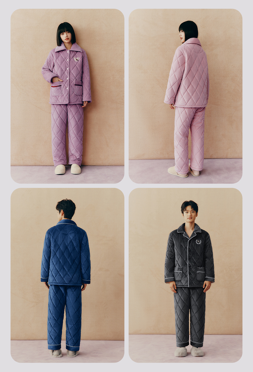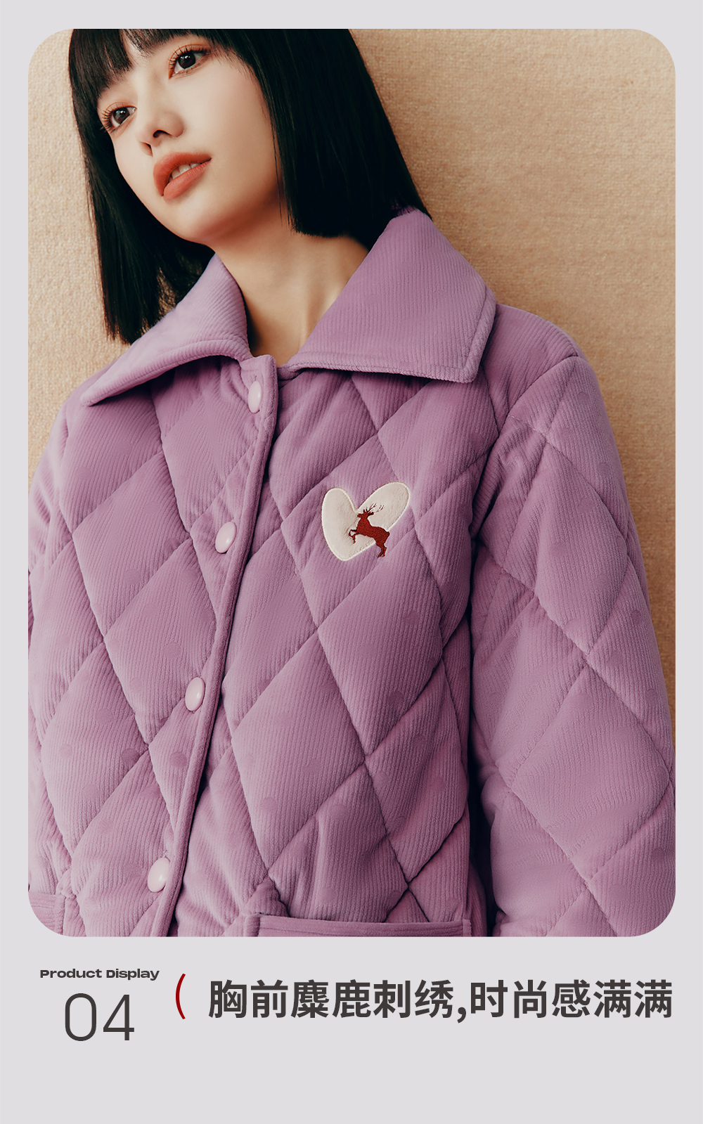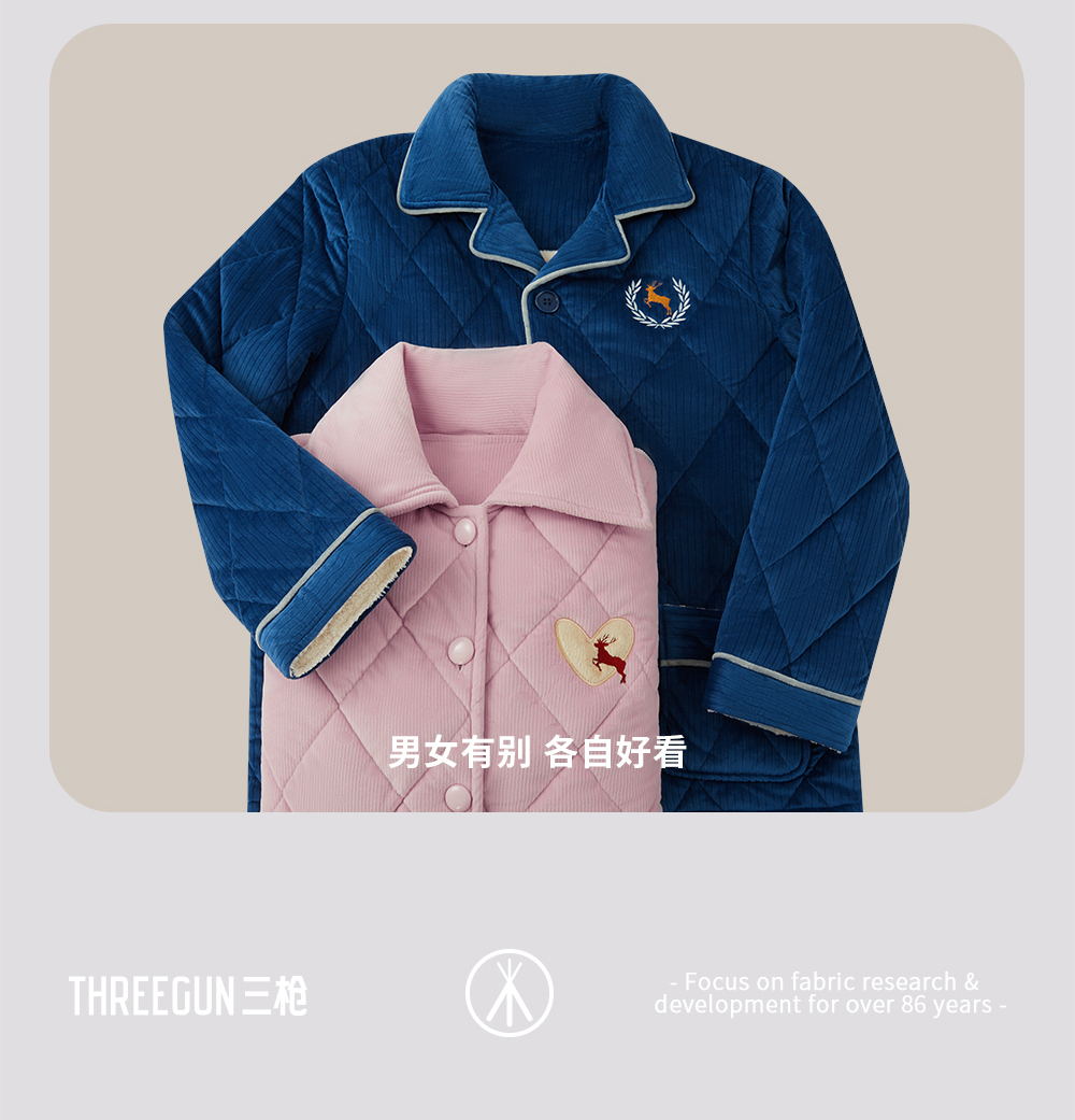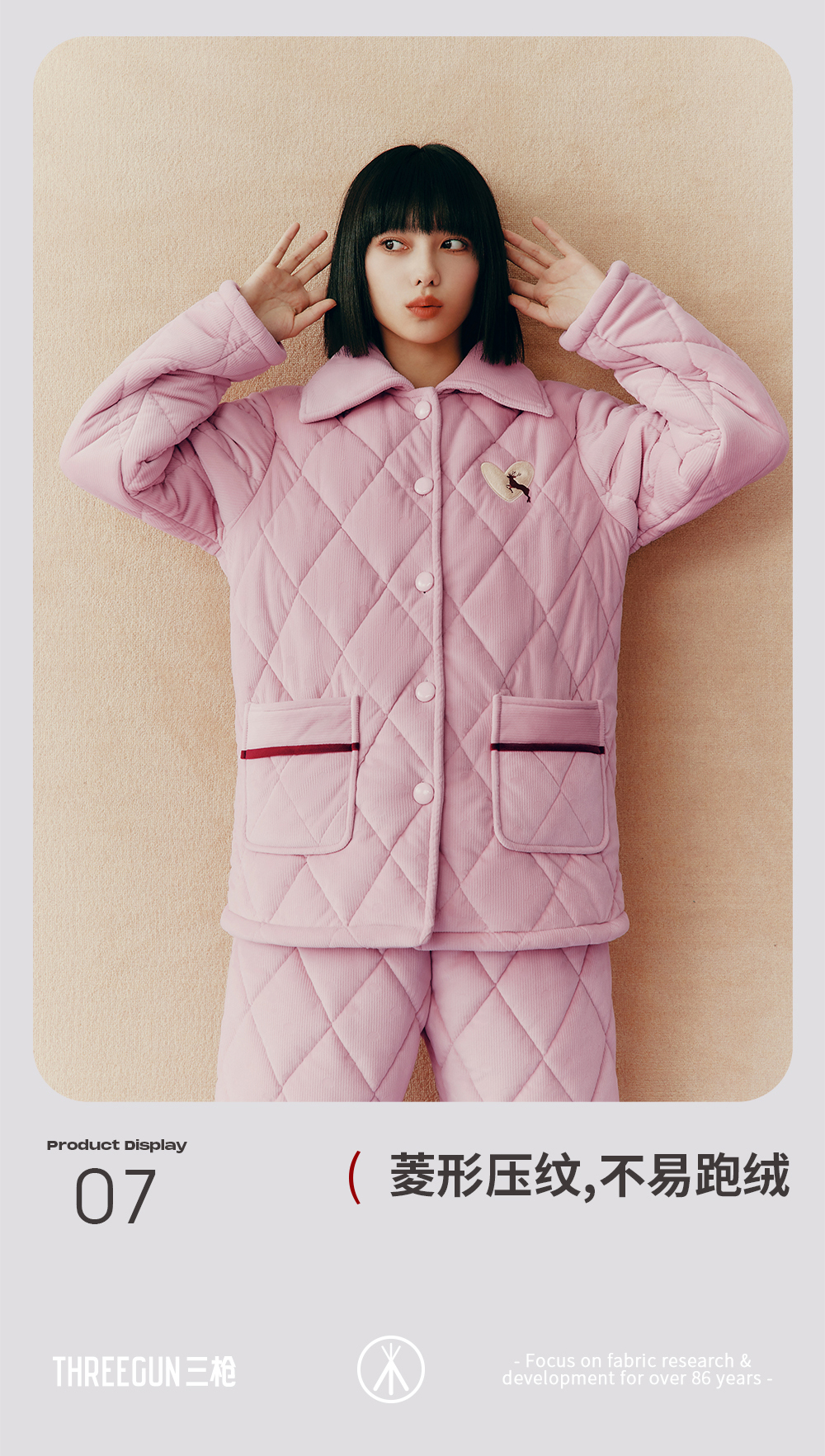 Threegun三枪 【隐条婴儿绒夹棉】翻领开襟女士家居套家居服-82288D011