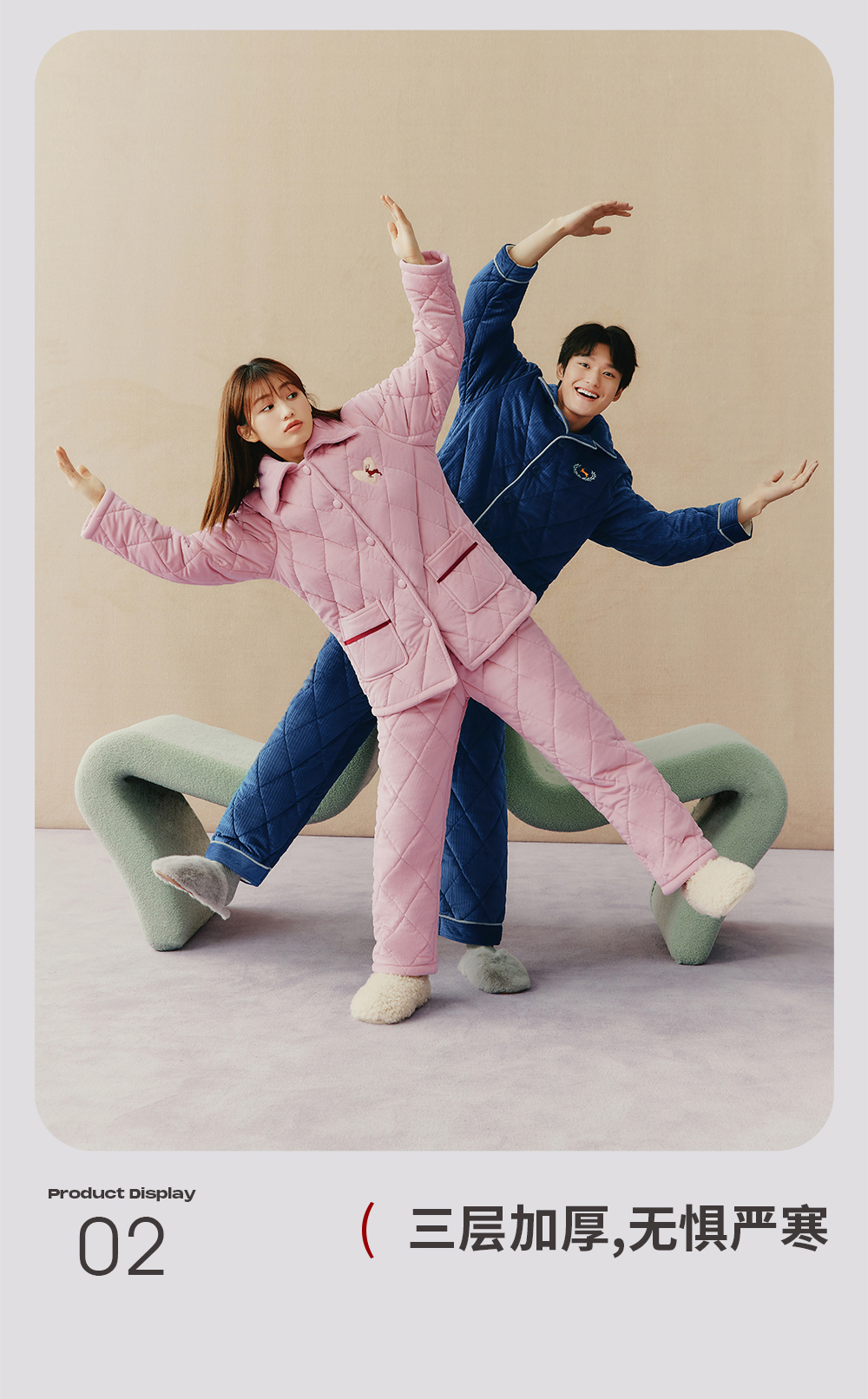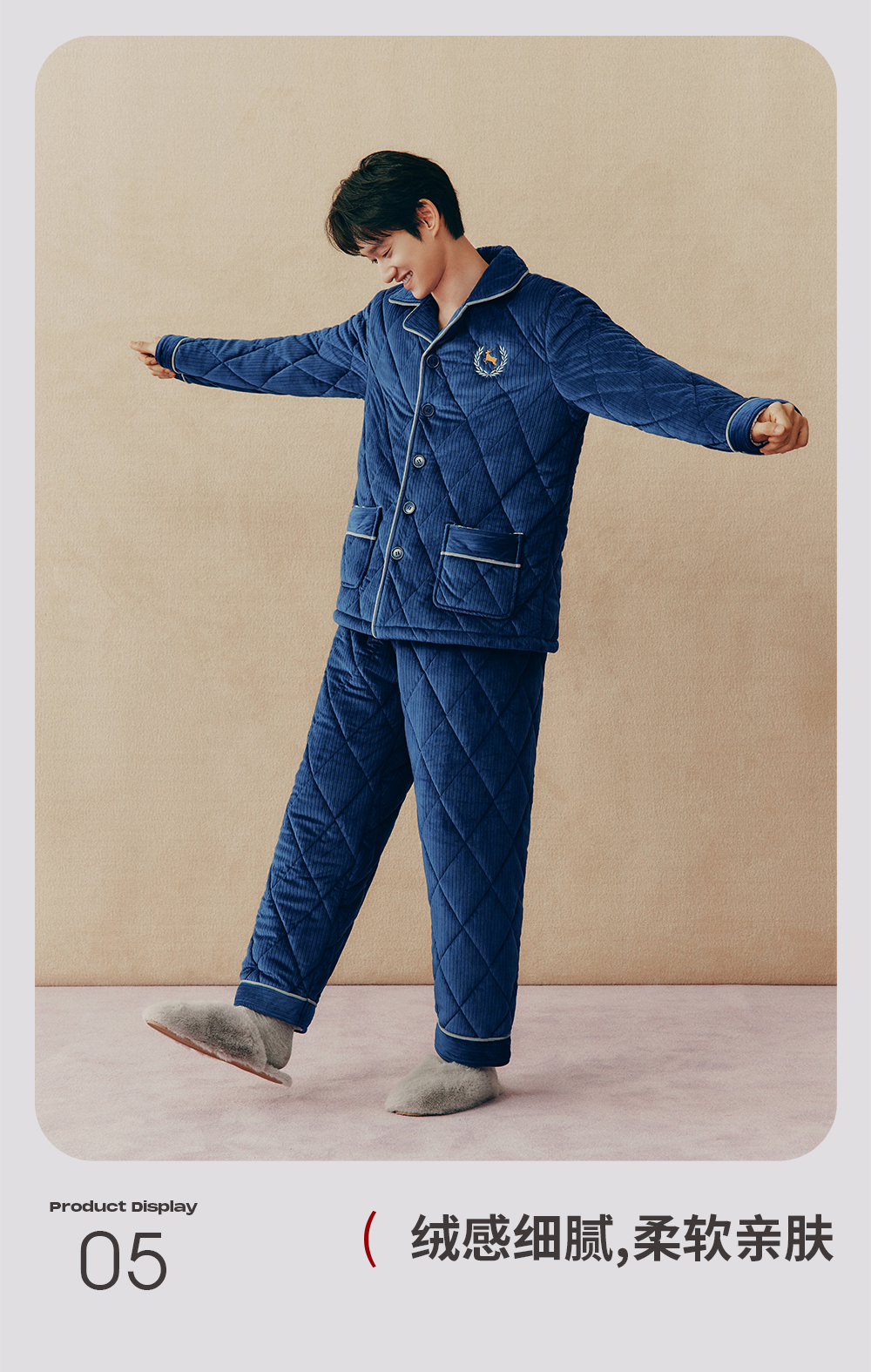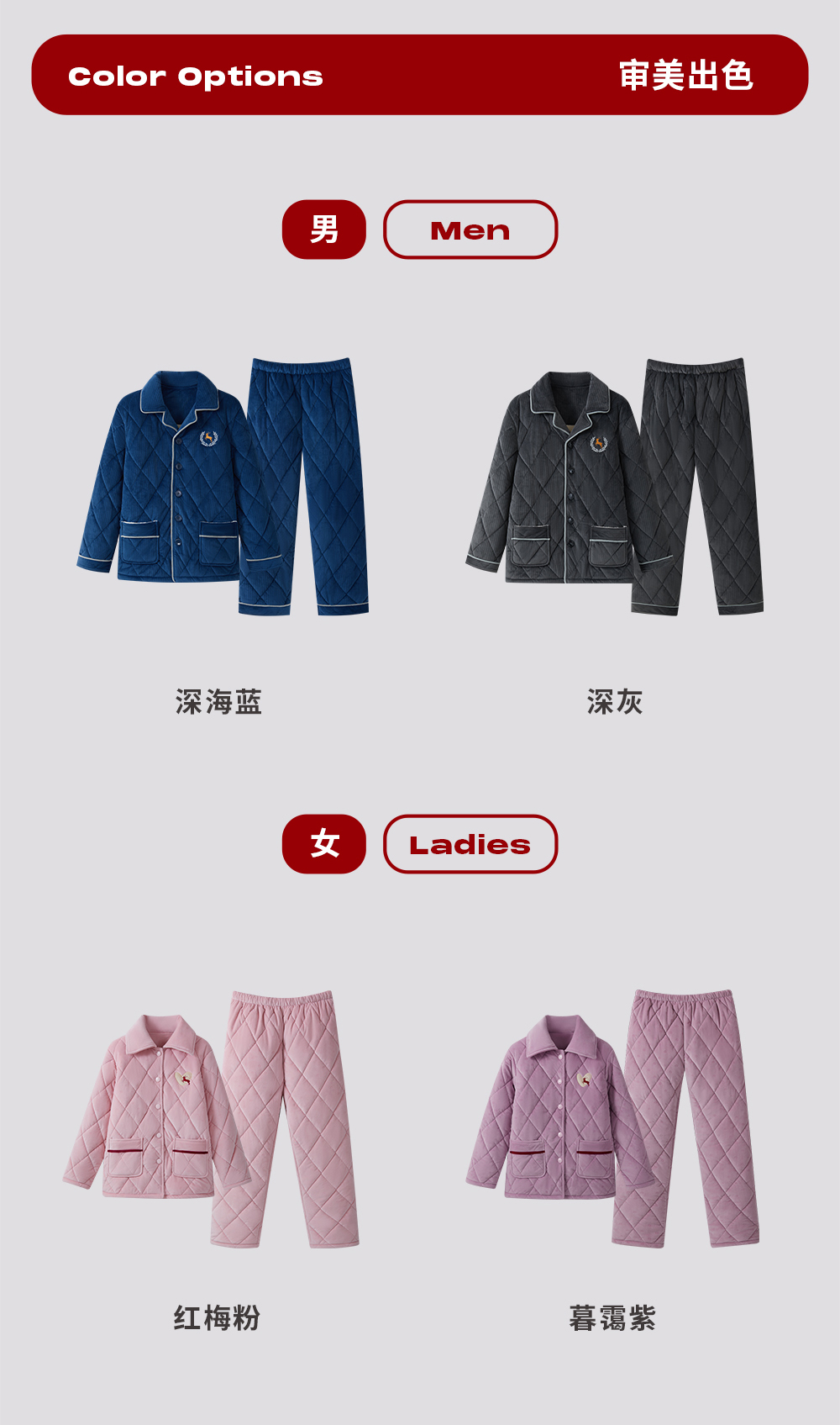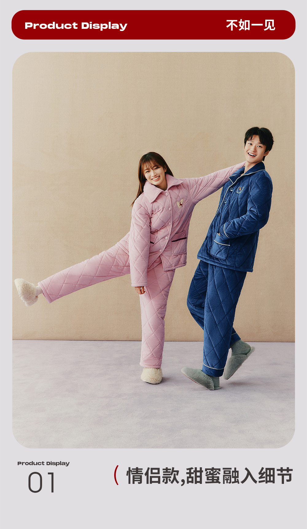 Threegun三枪 【隐条婴儿绒夹棉】翻领开襟女士家居套家居服-82288D011