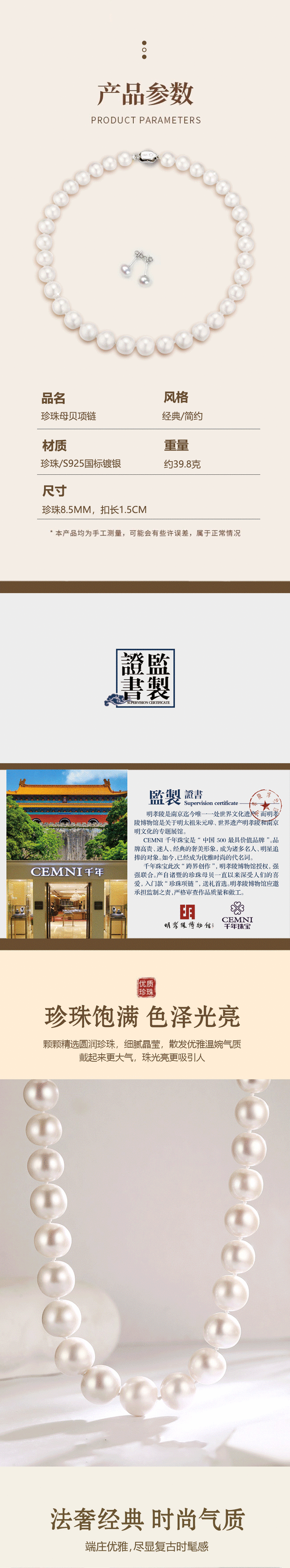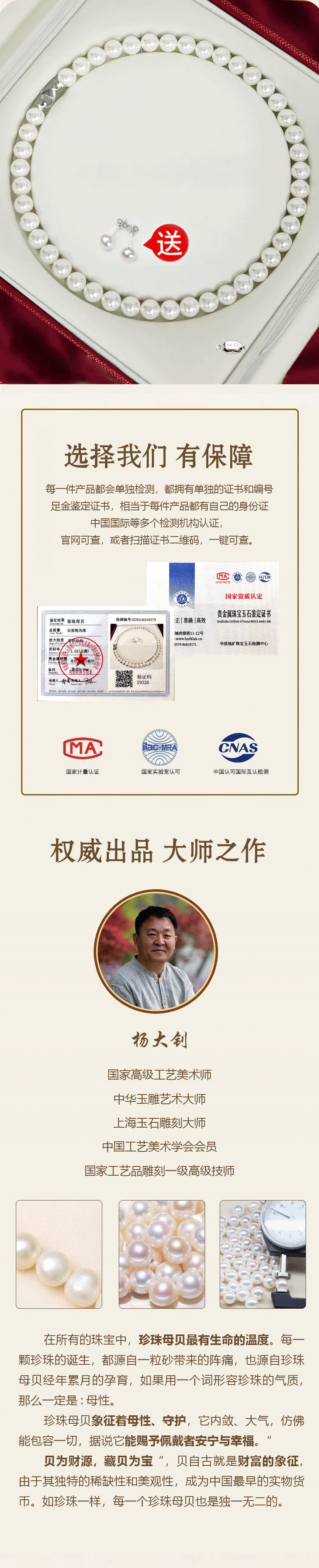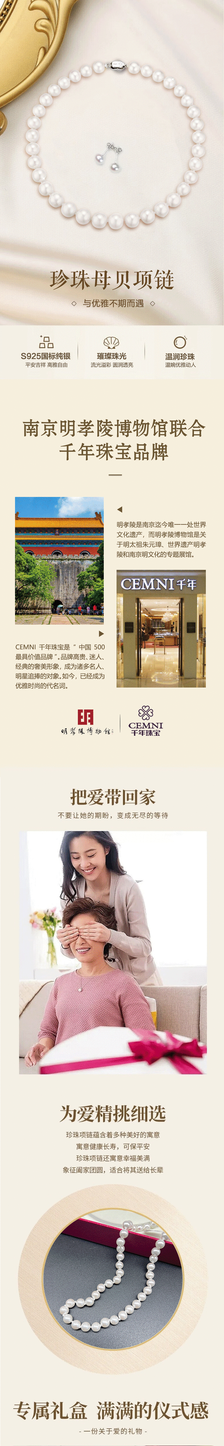 千年珠宝珍珠母贝项链【赠一对同款珍珠耳钉】