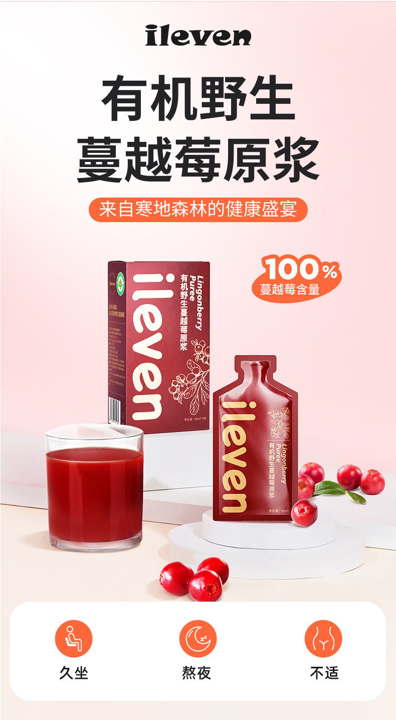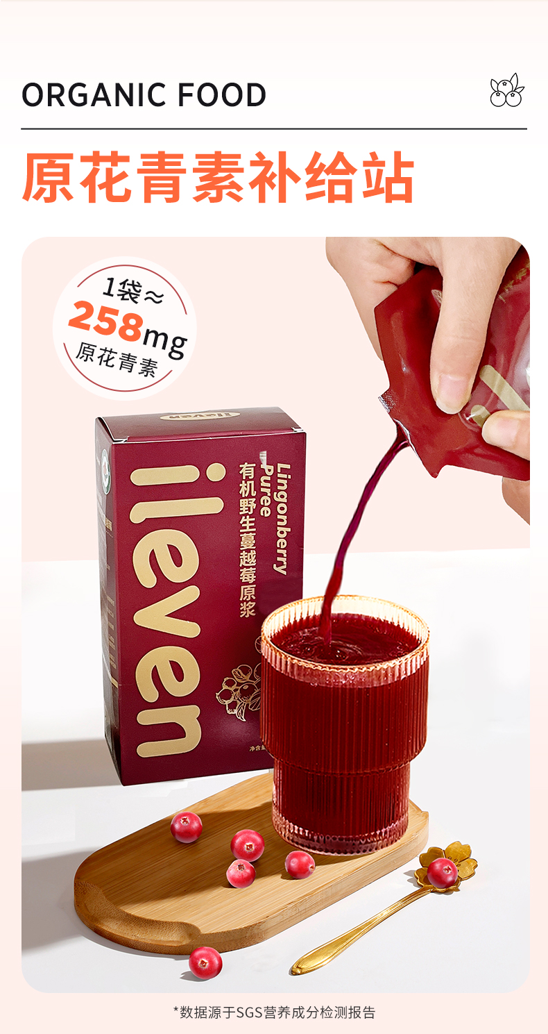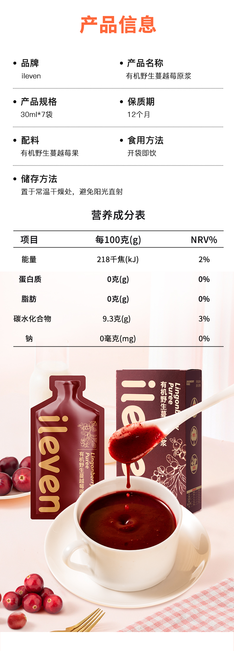 【叶一乐专属】ileven有机野生蔓越莓原浆30ml*7袋/盒