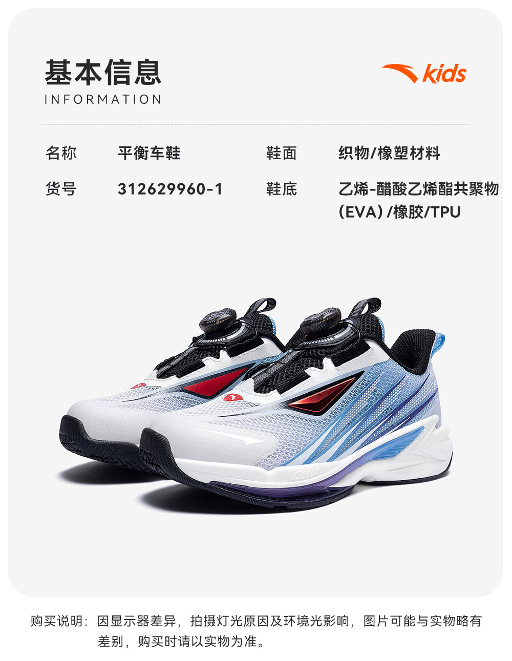 安踏儿童春季新款男小童飞骑士跑鞋平衡车鞋运动跑步防滑耐磨舒适312629960