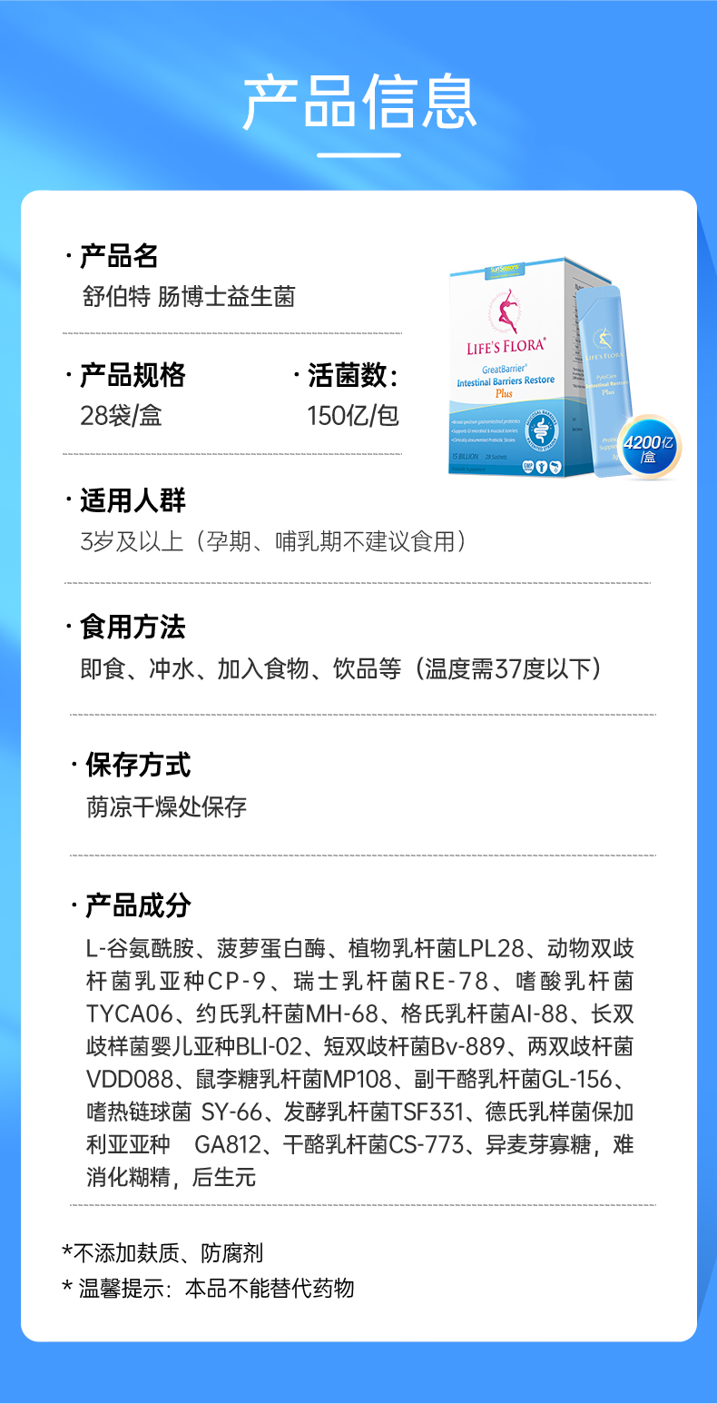 LifesFlora 舒伯特 肠博士氨基酸益生菌 28条/盒