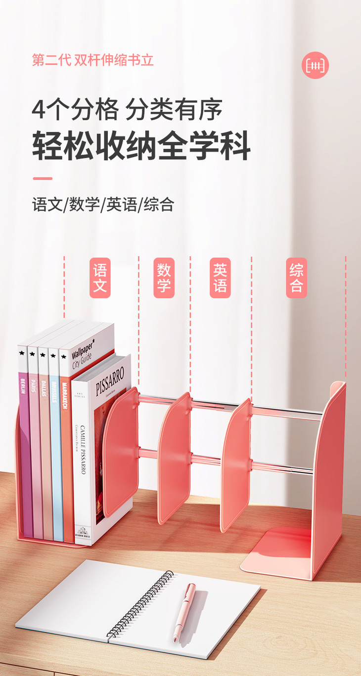 猫太子可伸缩书立架带笔筒创意立书架桌上学生书夹固定书本折叠收纳ins风桌面书立放书的架子隔板书档板