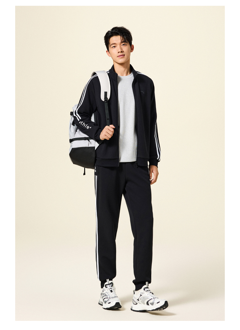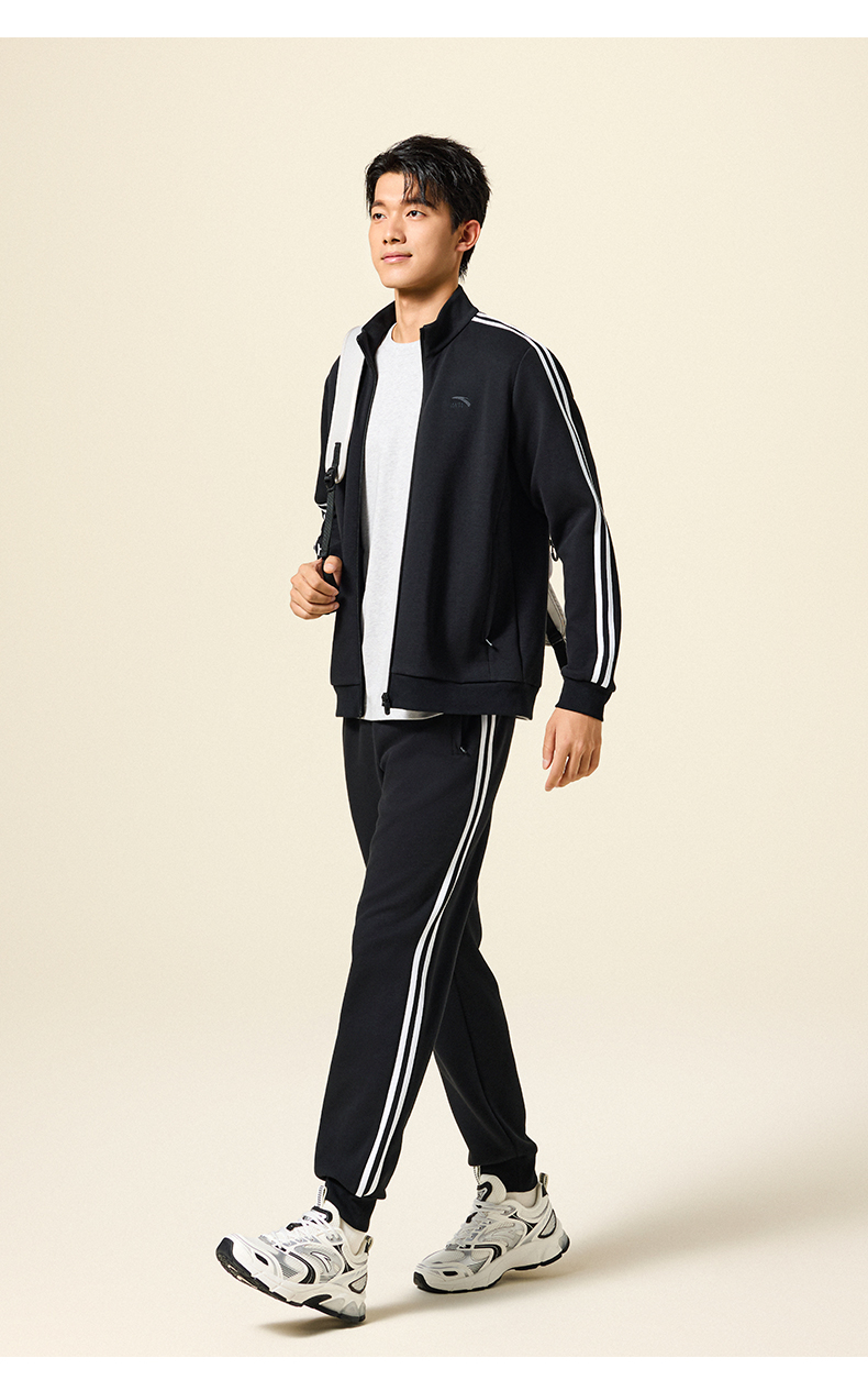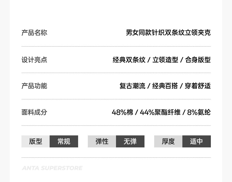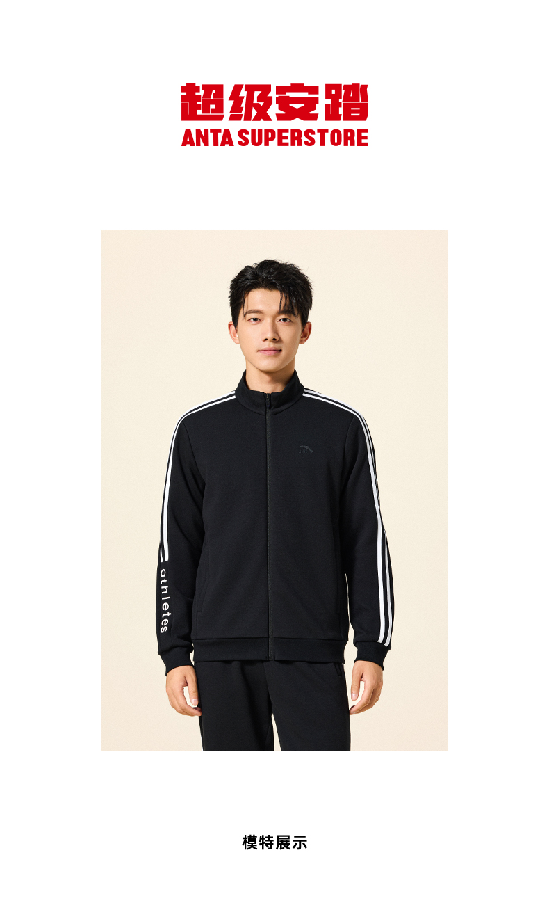 超级安踏运动外套男女同款秋季经典双条纹复古针织立领夹克上衣172538708U