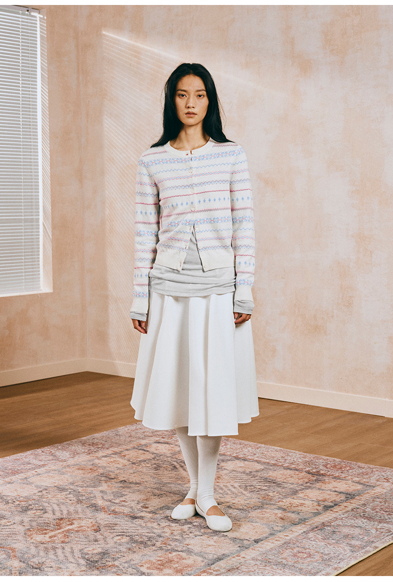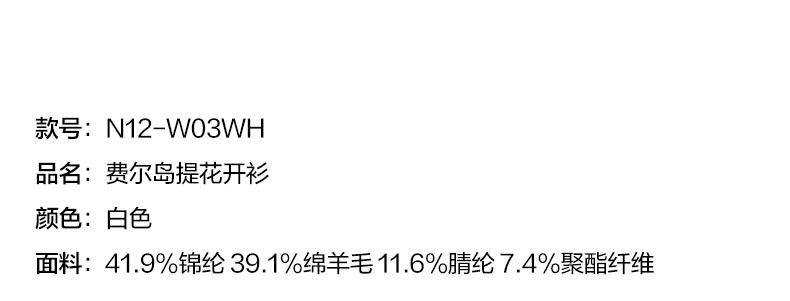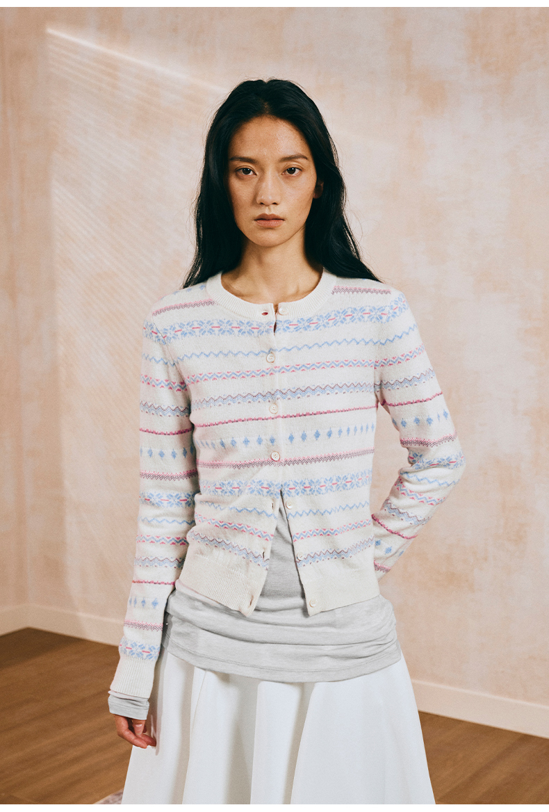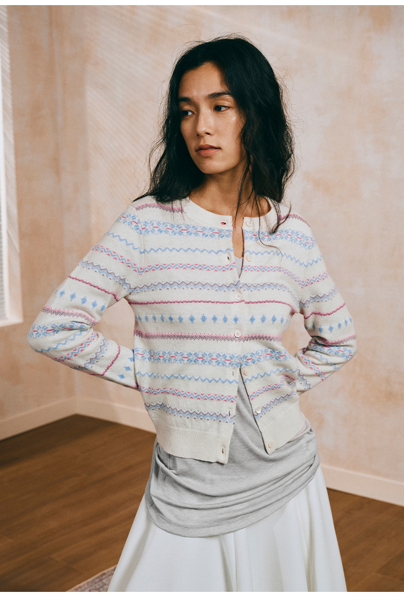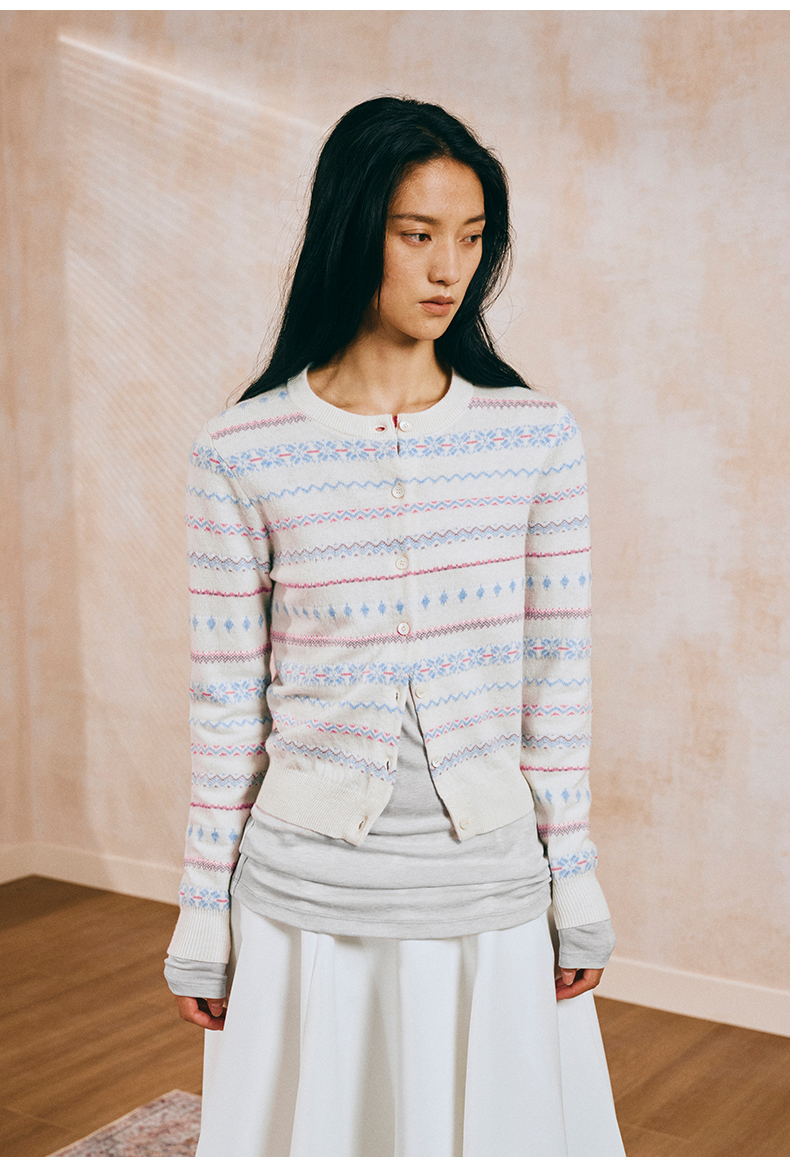 NUTH 亲肤澳毛费尔岛毛衣针织开衫女 奶油白