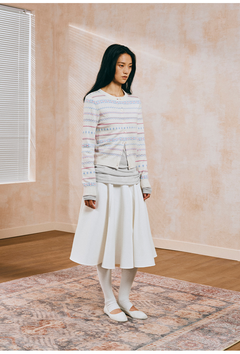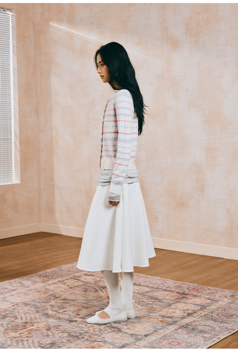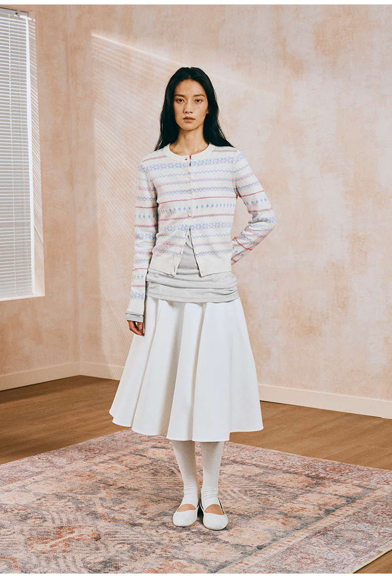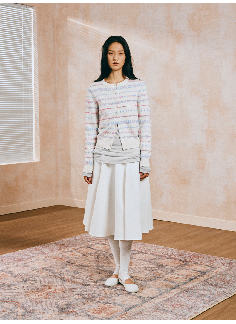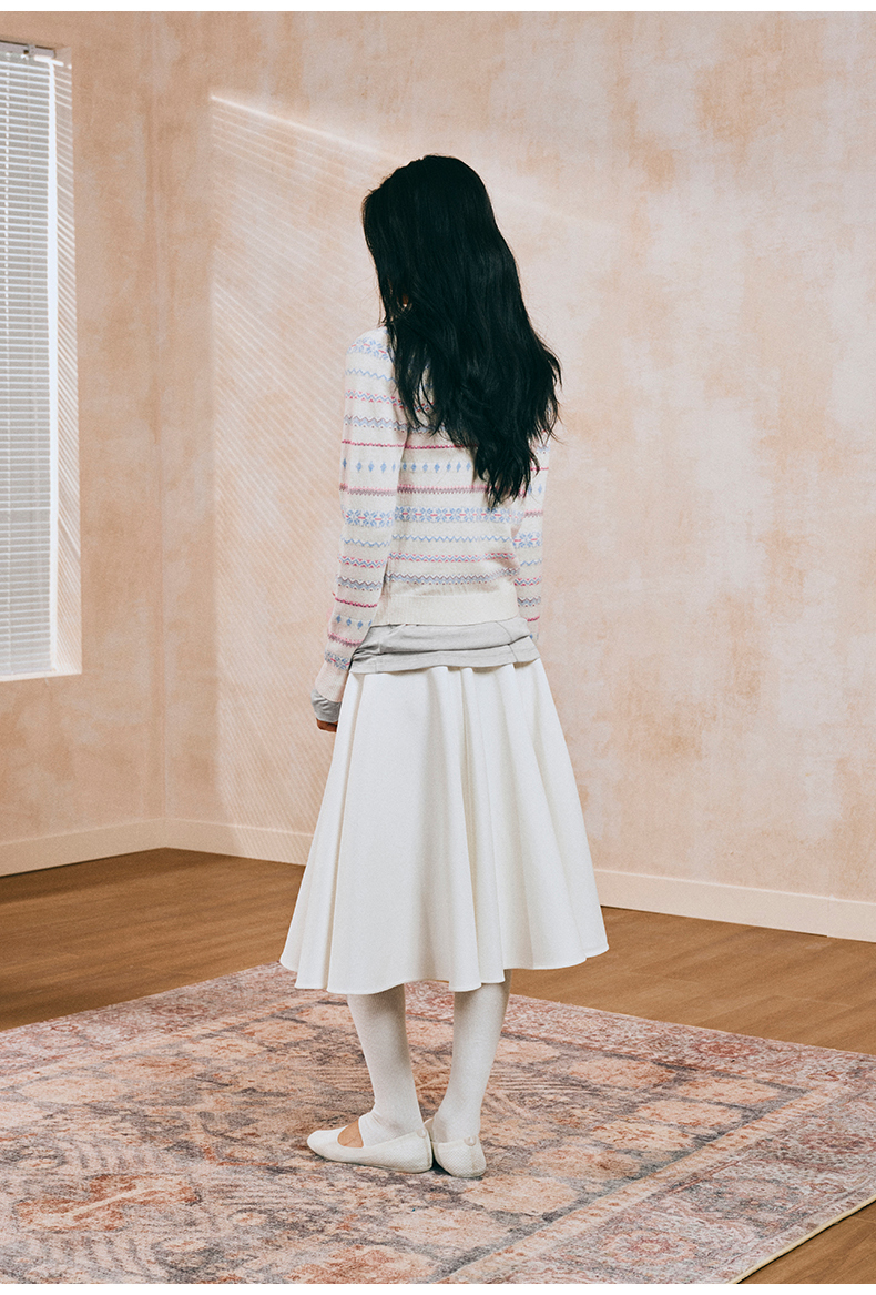 NUTH 亲肤澳毛费尔岛毛衣针织开衫女 奶油白