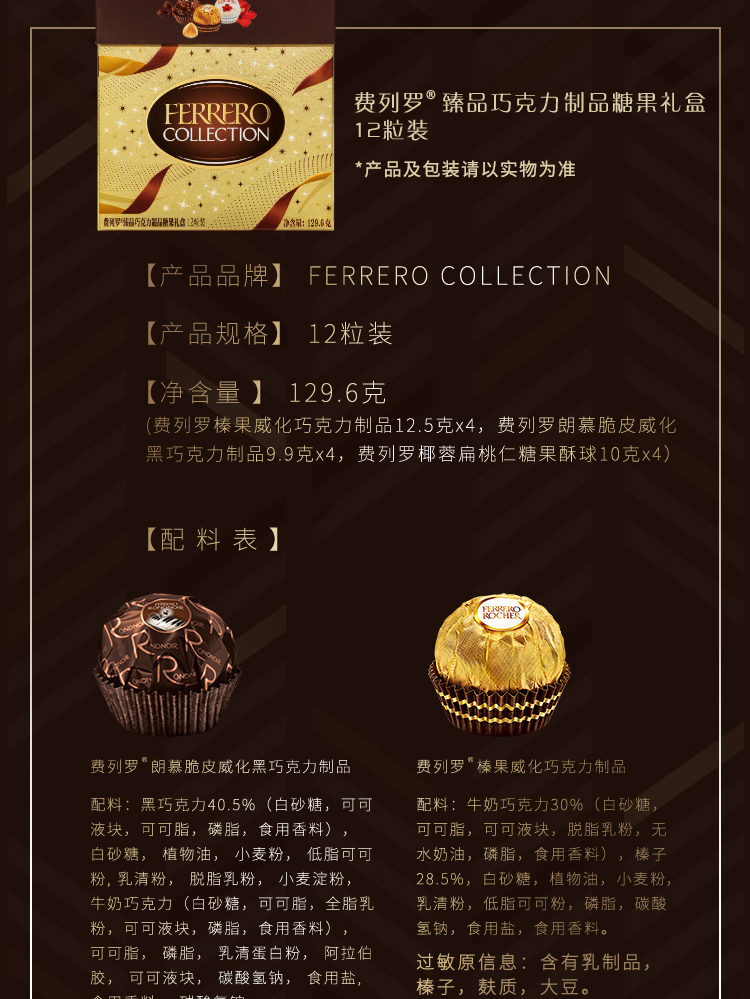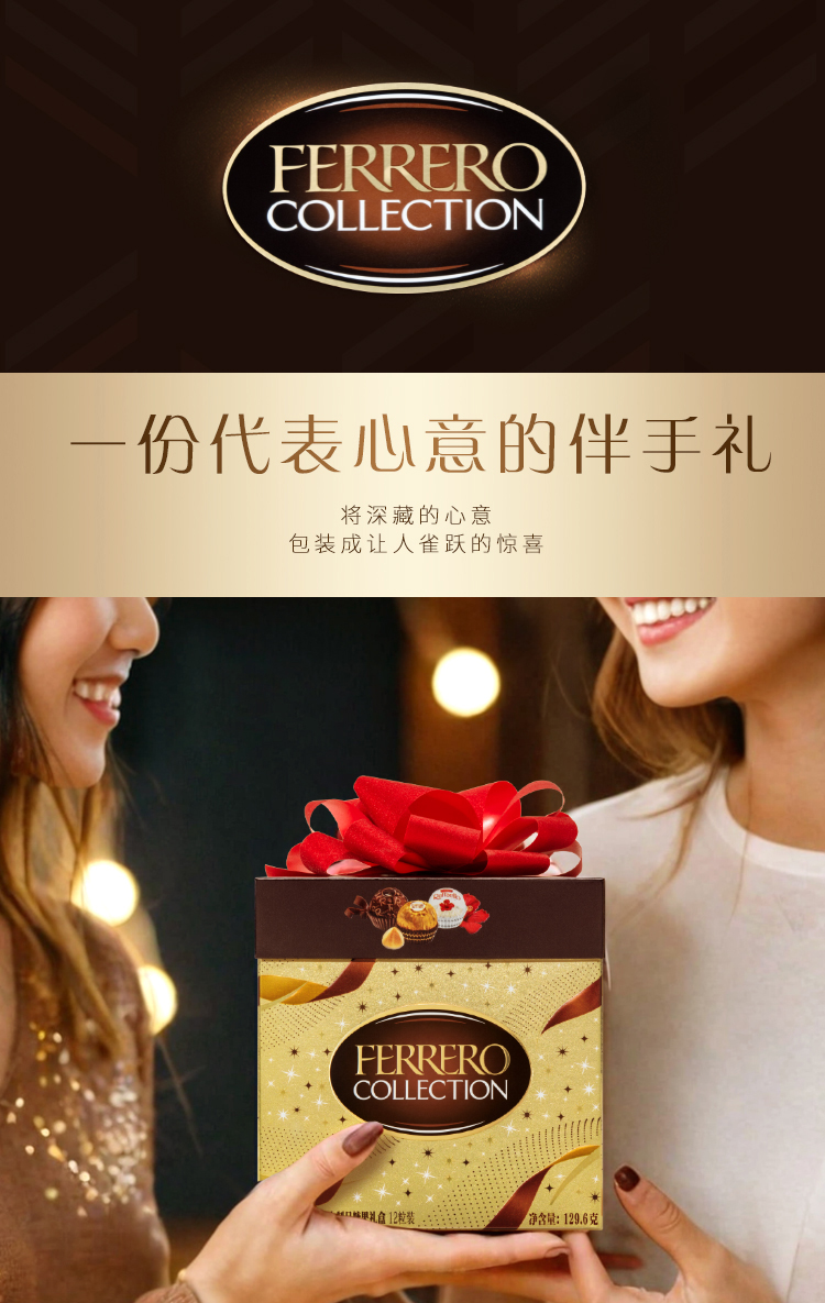 【费列罗】 臻品巧克力制品糖果礼盒129.6g(12粒)