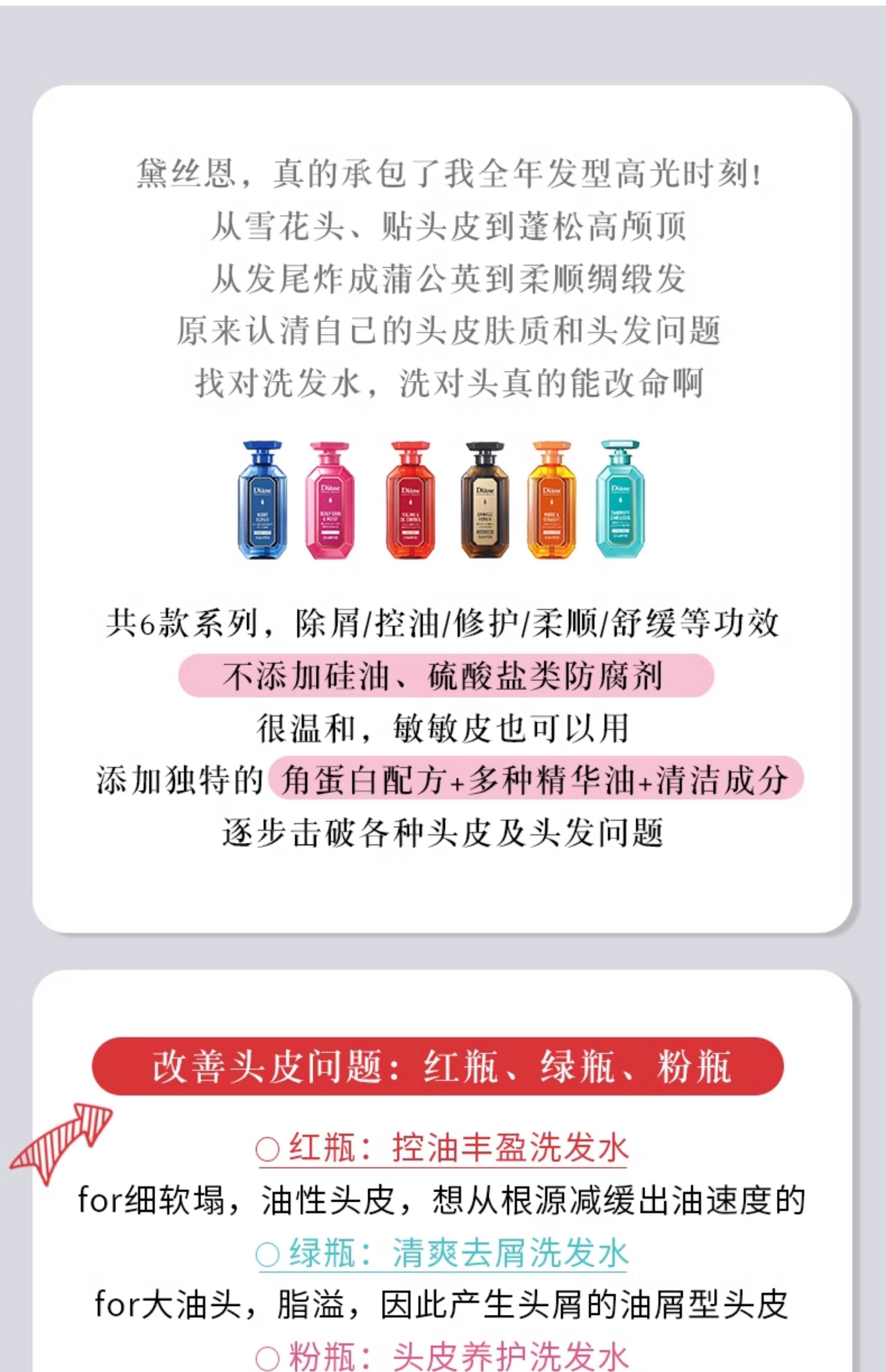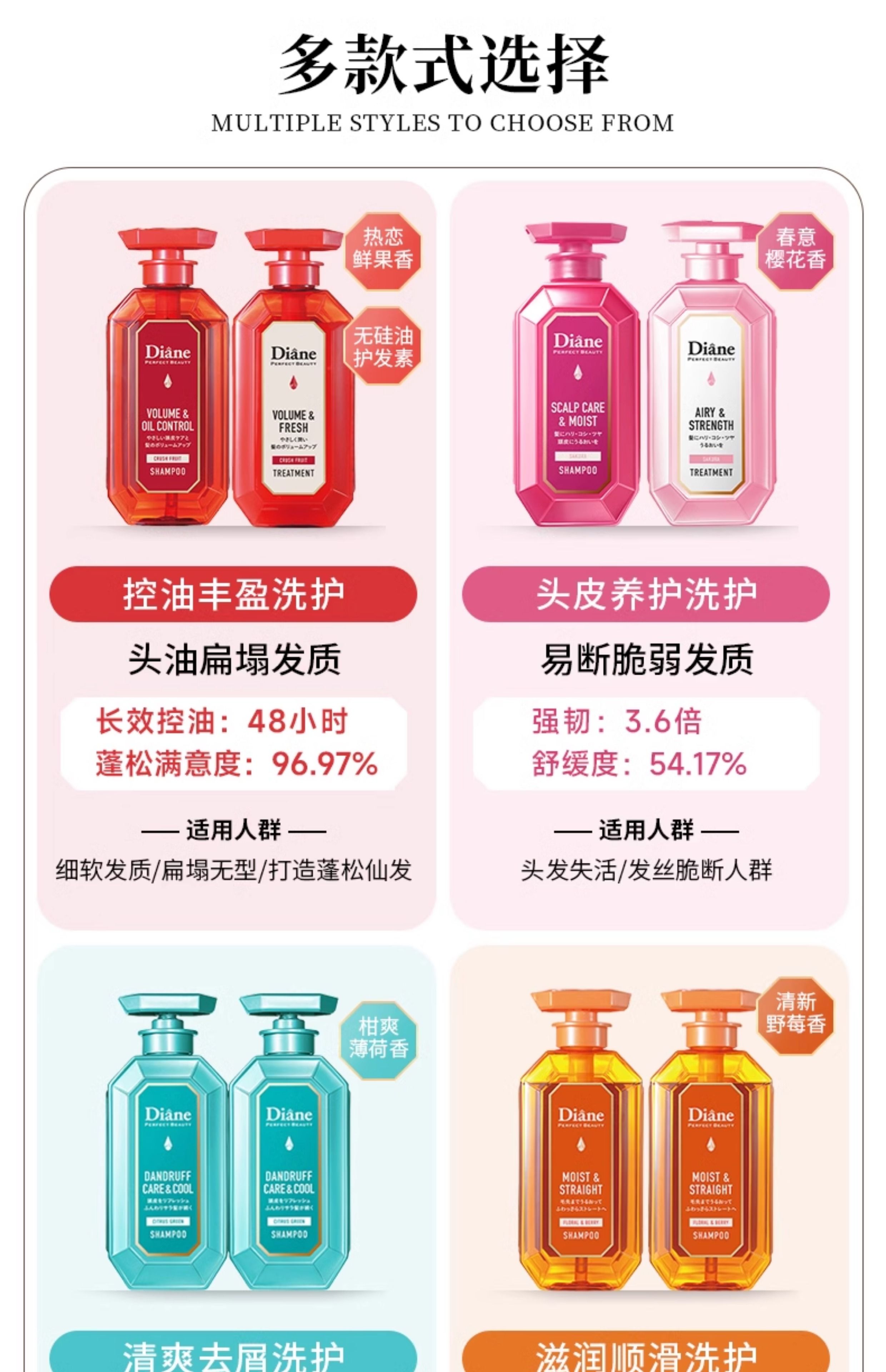 Moist Diane黛丝恩 致美洗发水控油蓬松改善毛躁无硅油去屑洗发膏 450ml/瓶