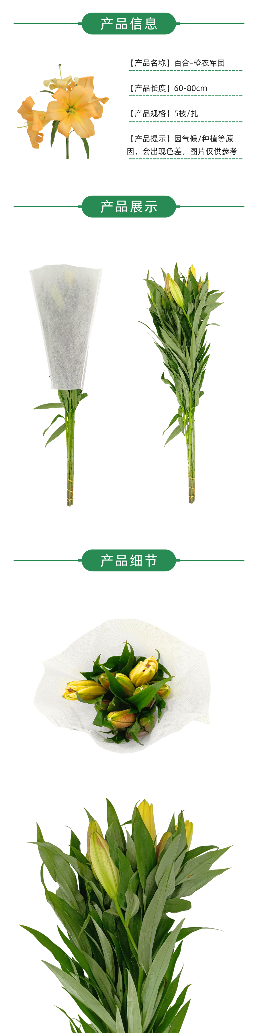 百合 橙衣军团二头 5枝一扎