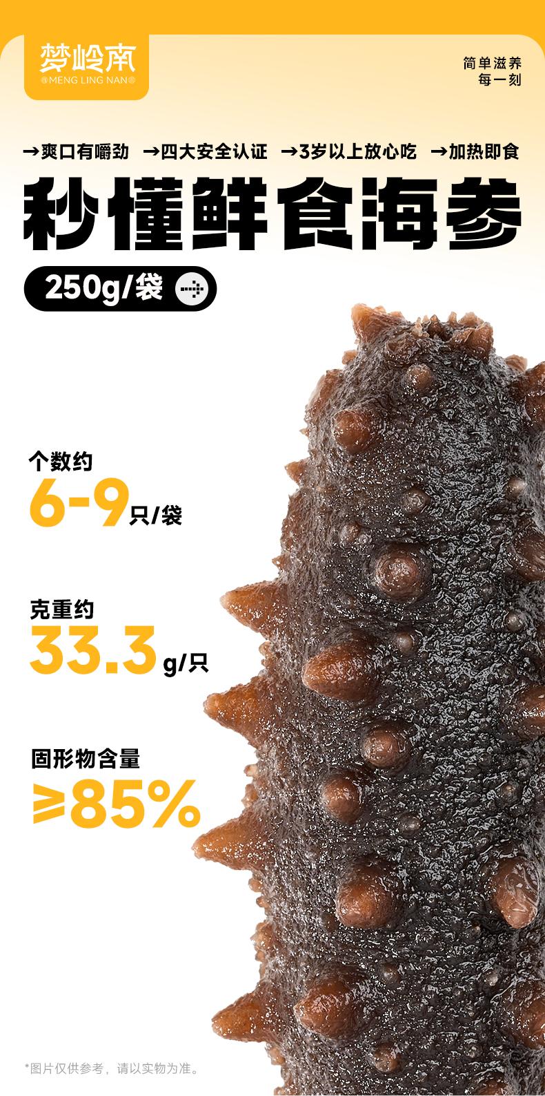 【海中人参 十全营养】梦岭南鲜食海参250g装 正宗大连辽刺参 加热即食 营养浓厚 老少皆宜