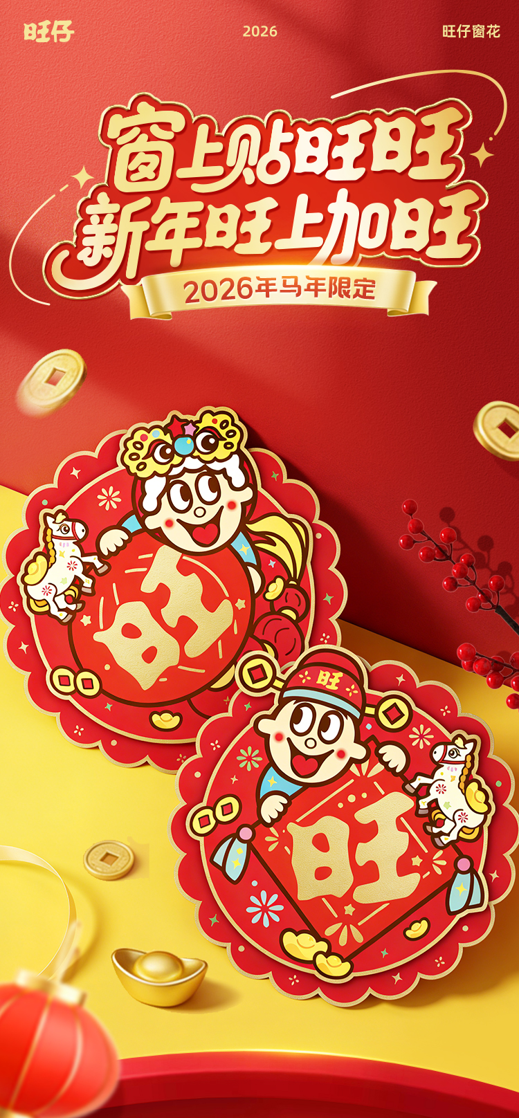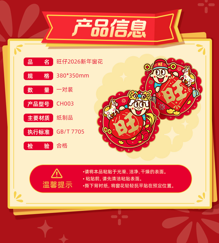 旺仔马年限定新年窗花一对