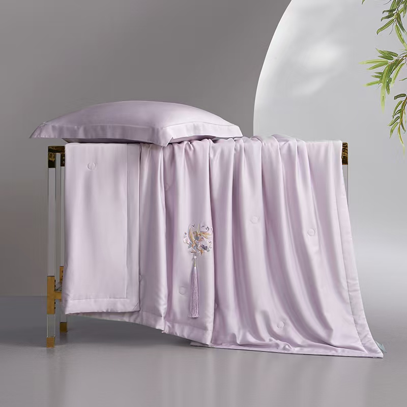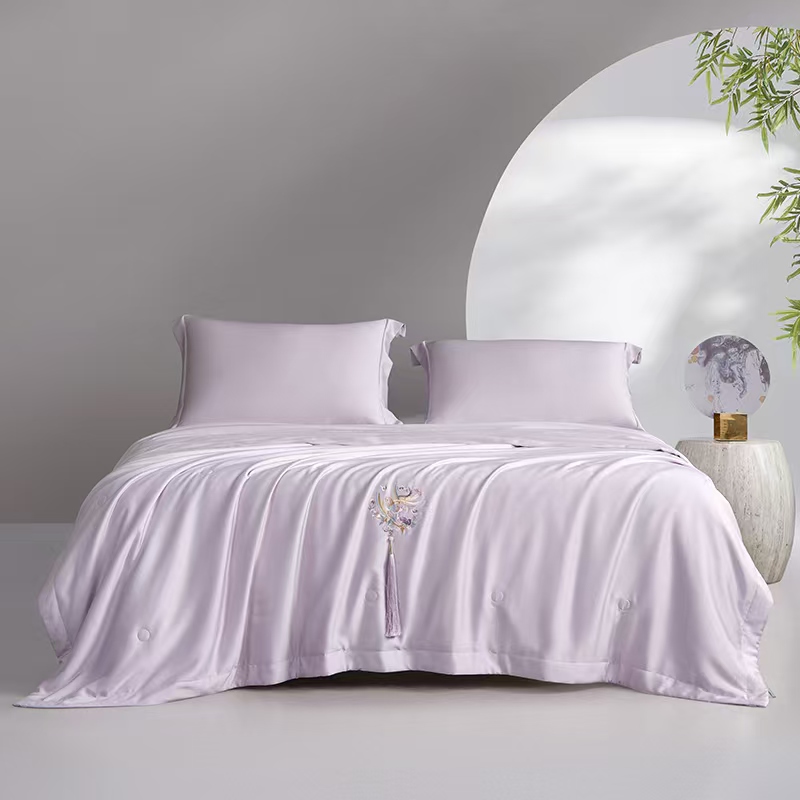 梦洁 01844 天丝棉水洗有机纯蚕丝夏被:中国 蒸蒸日上(烟紫)