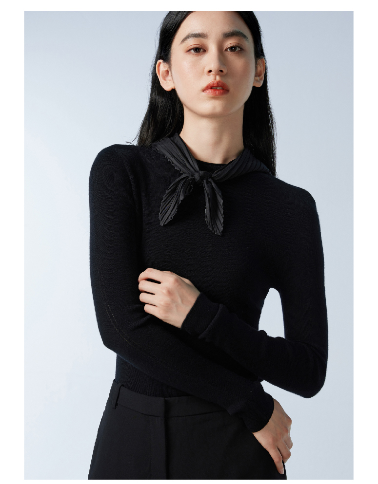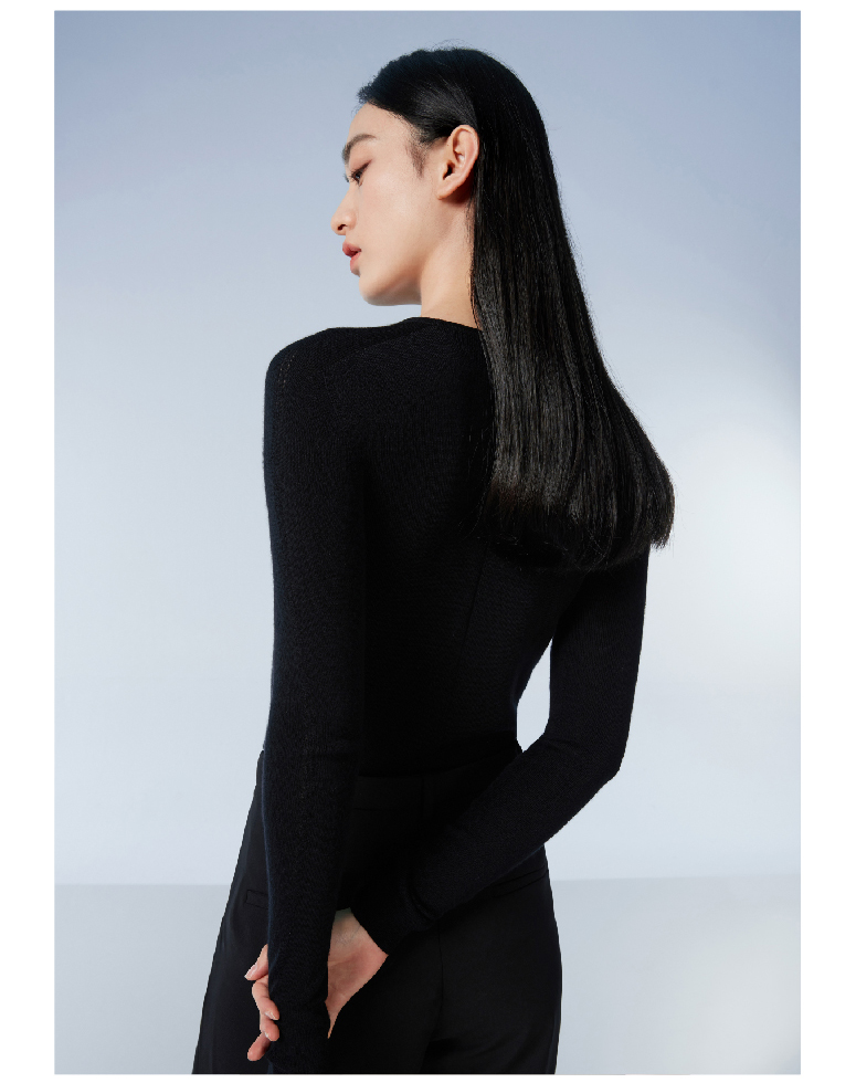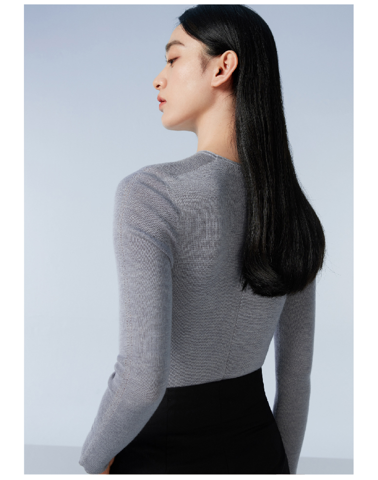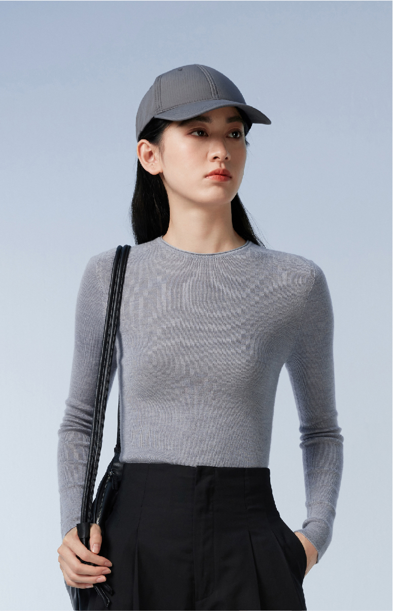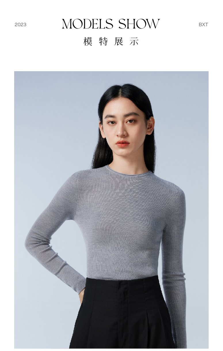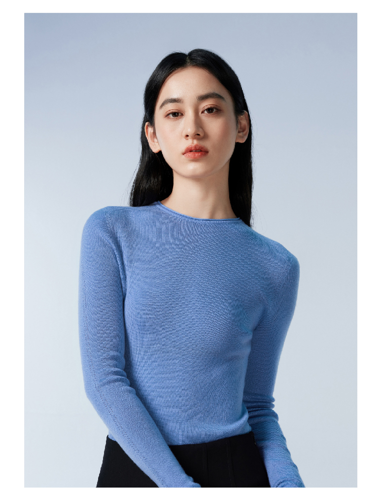 拇指白小衫一体织圆领女款羊毛衫无限系列