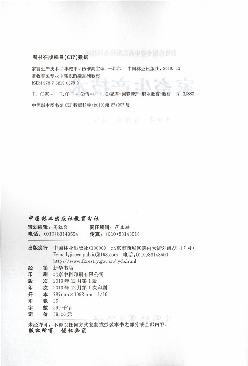 家畜生产技术 0378 丰艳平 伍维高主编 畜牧兽医专业中高职衔接系列教材 中国林业出版社
