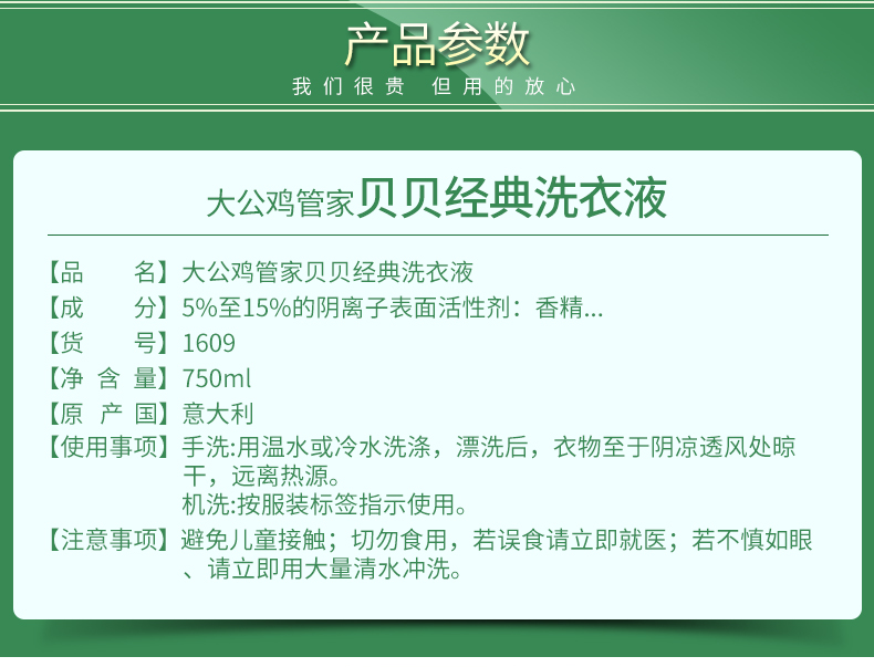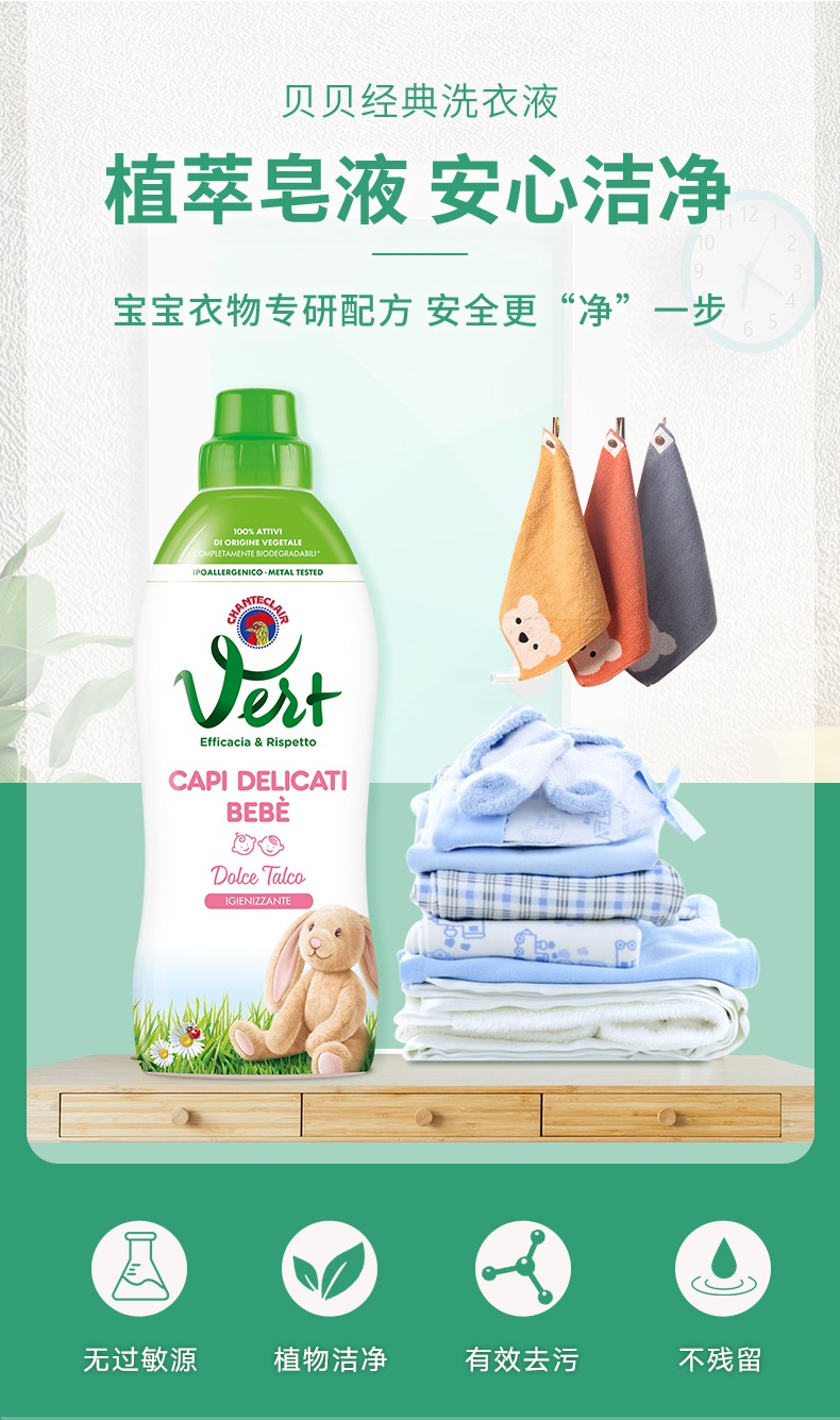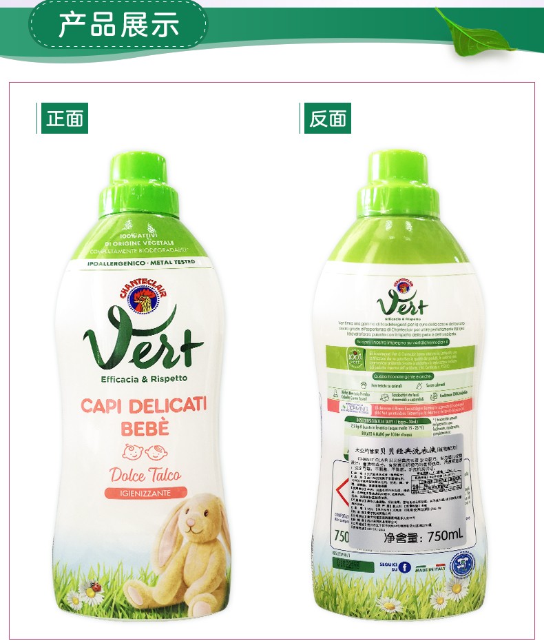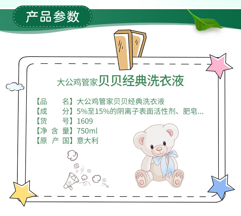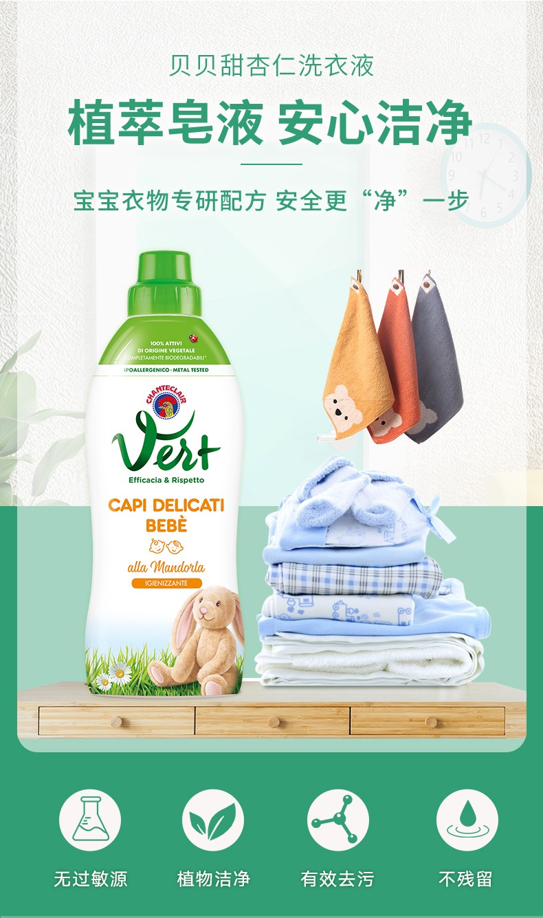 【2瓶装】CHANTECLAIR大公鸡管家 儿童衣物洗衣液贝贝甜杏仁香型/经典香型 750ml*2瓶
