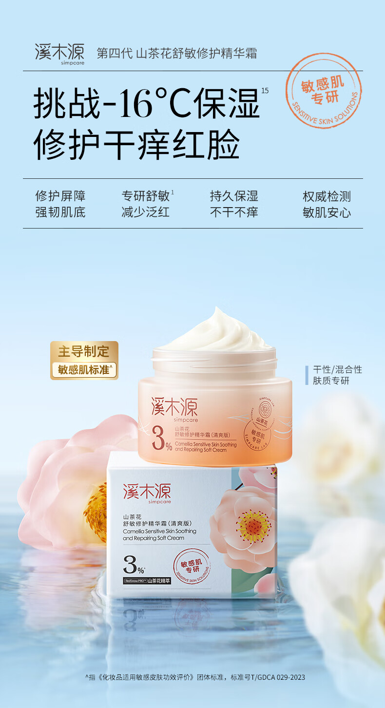 溪木源 山茶花舒敏修护精华霜(清爽版)30g XMY-207