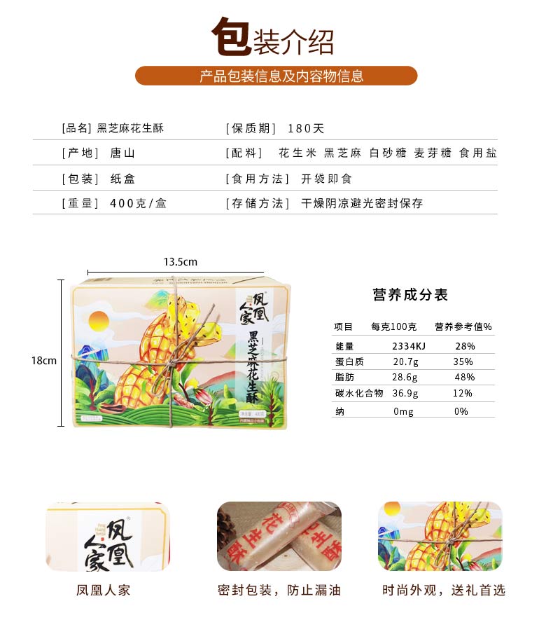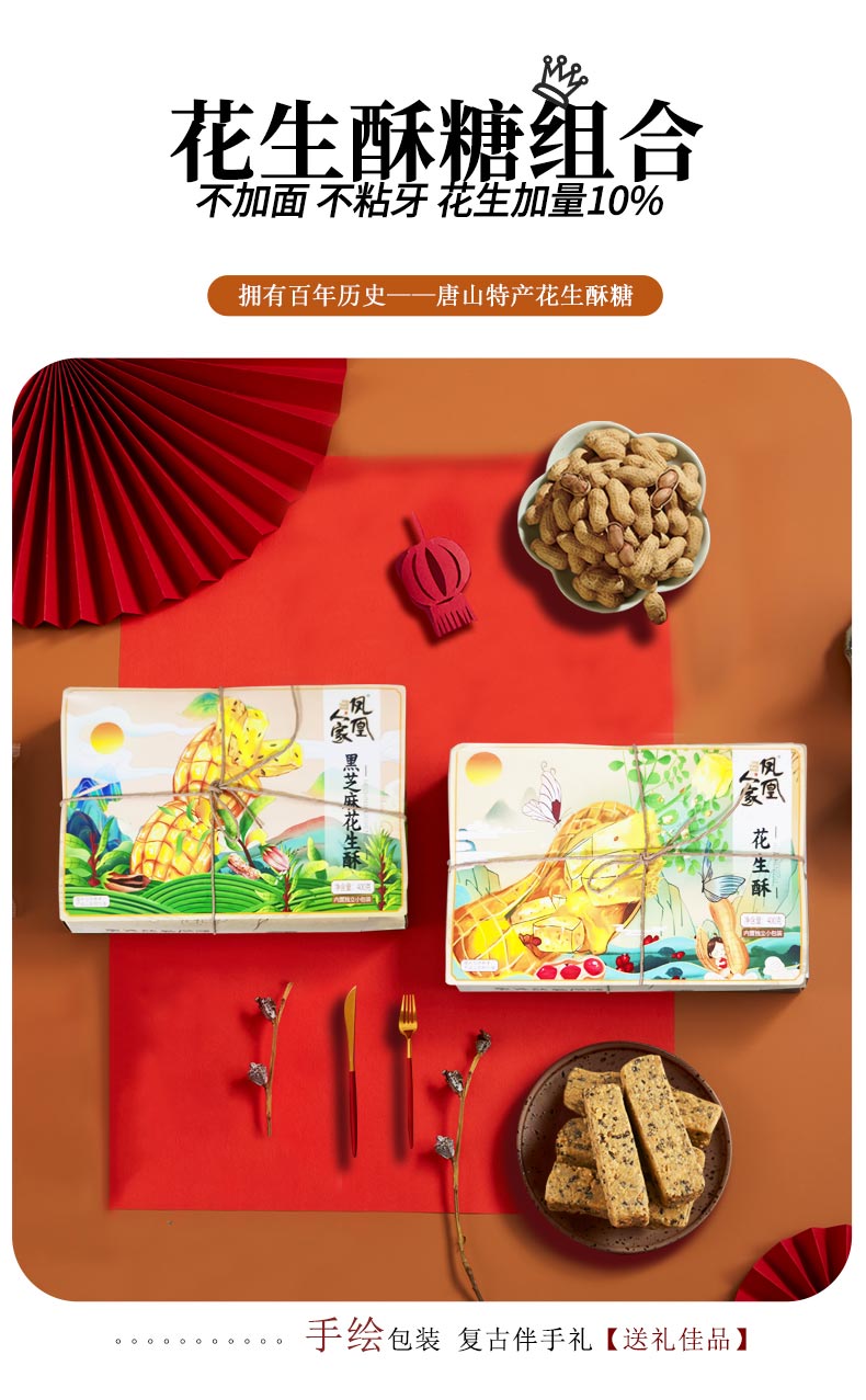 严选 | 凤凰人家原味芝麻花生酥 400g*2盒