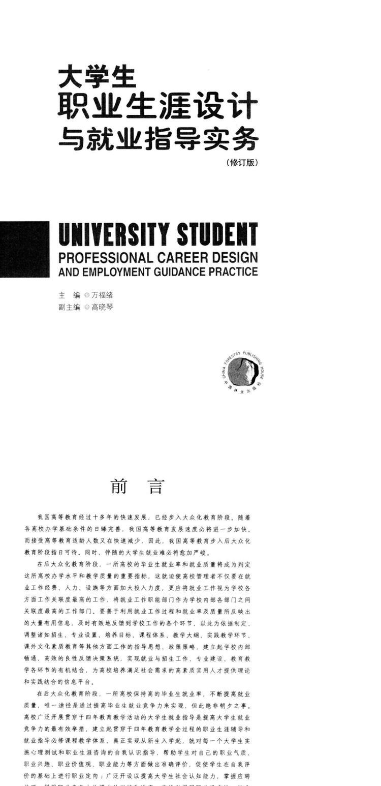 大学生职业生涯设计与就业指导实务 修订版 6080 中国林业出版社