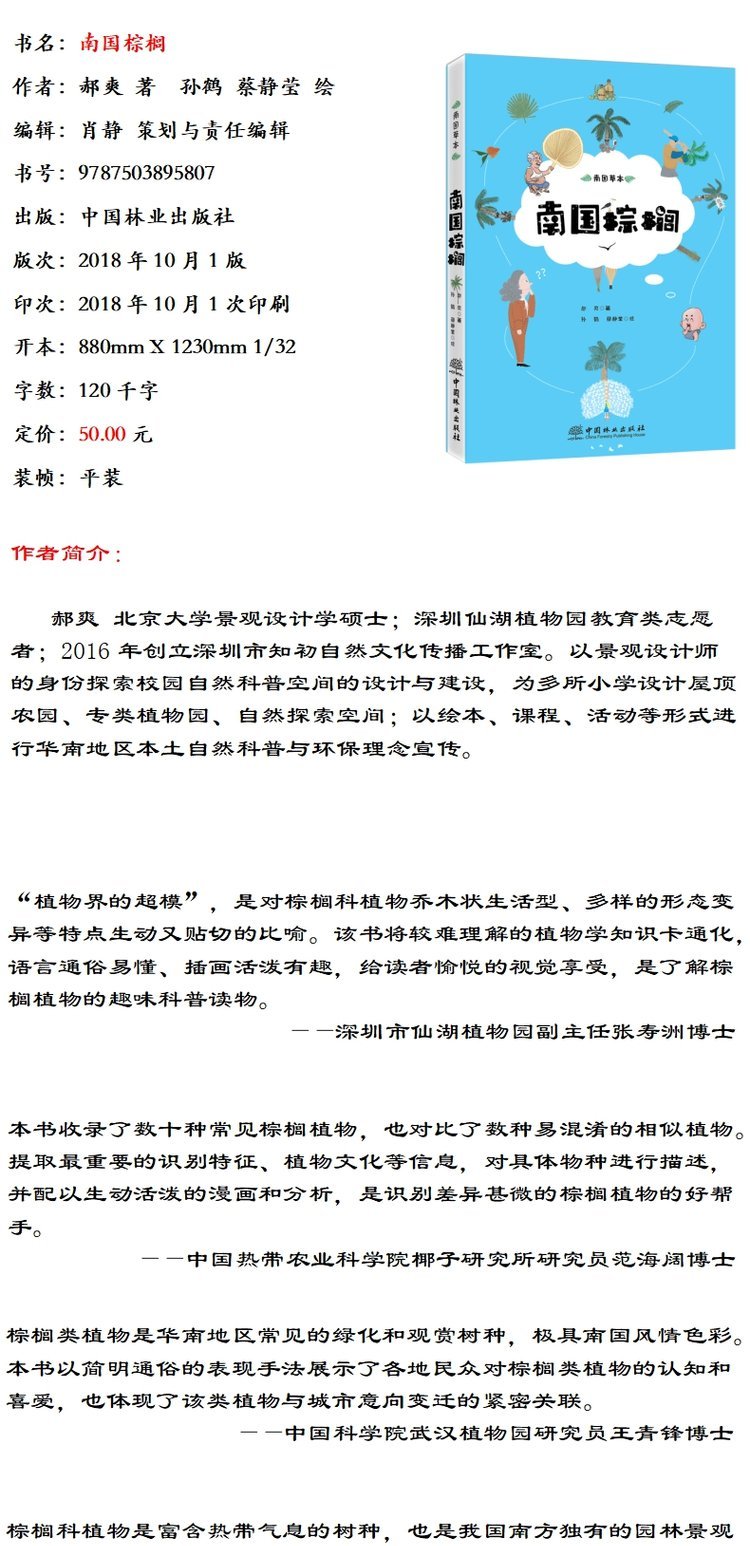 南国棕榈 9580 热带风情代言人 郝爽 著 南国草本 认识棕榈科植物 少儿趣味插画科普读物 绿化观赏树种 中国林业出版社 畅销书
