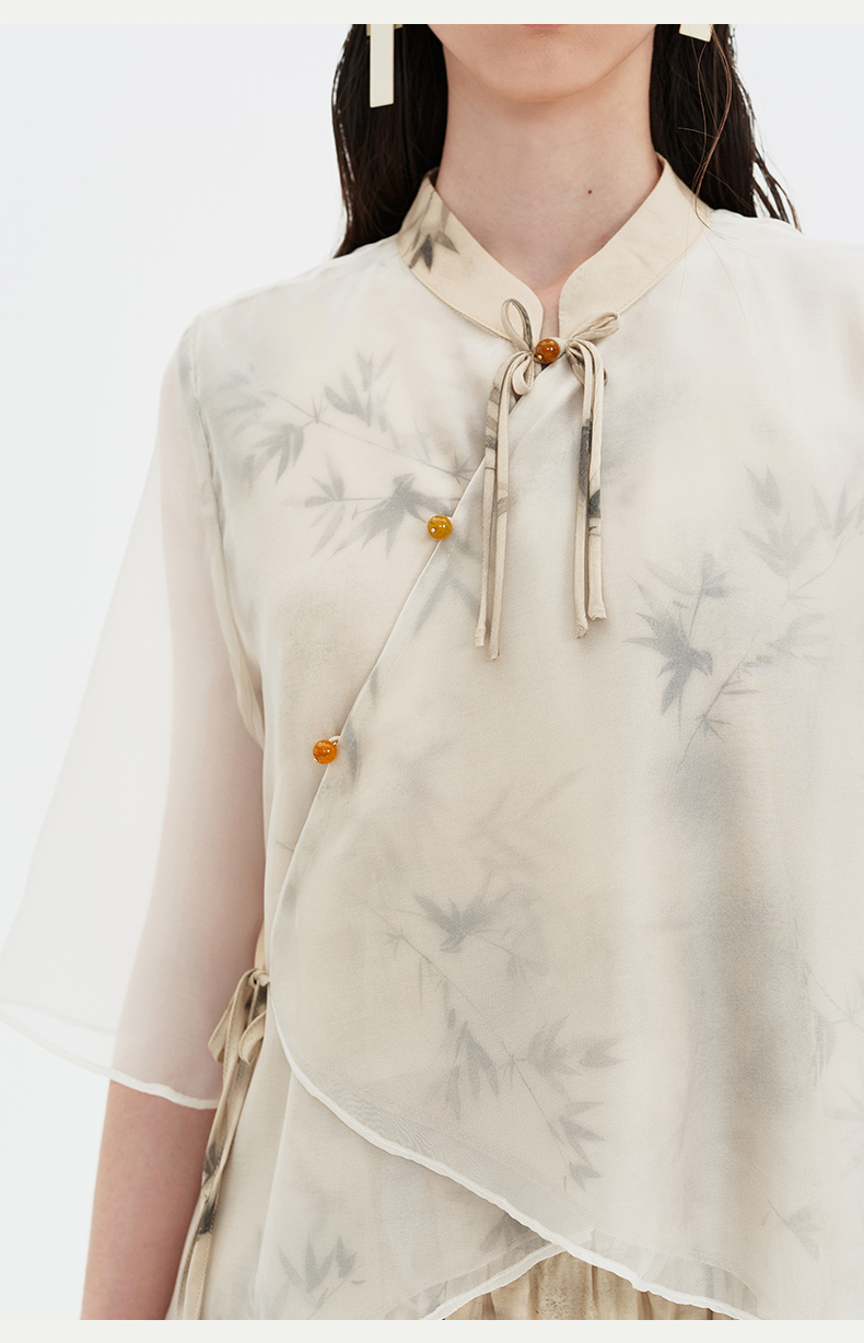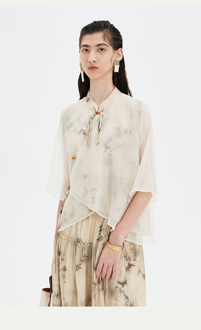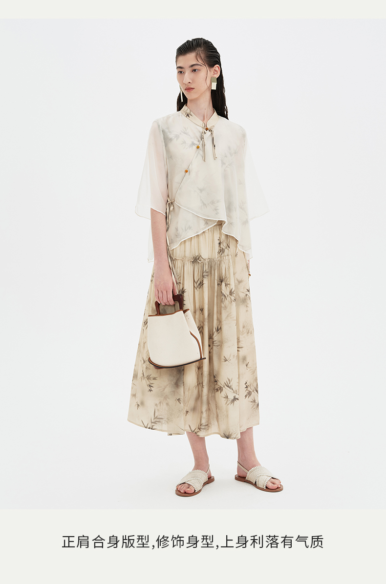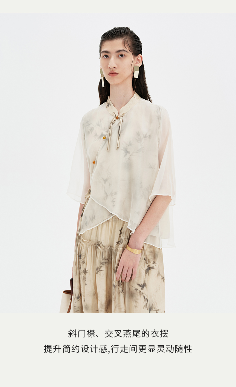 SELFWHO水墨印花新中式衬衫2024女夏国风吸湿透气修身小个子上衣