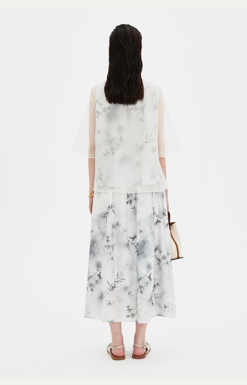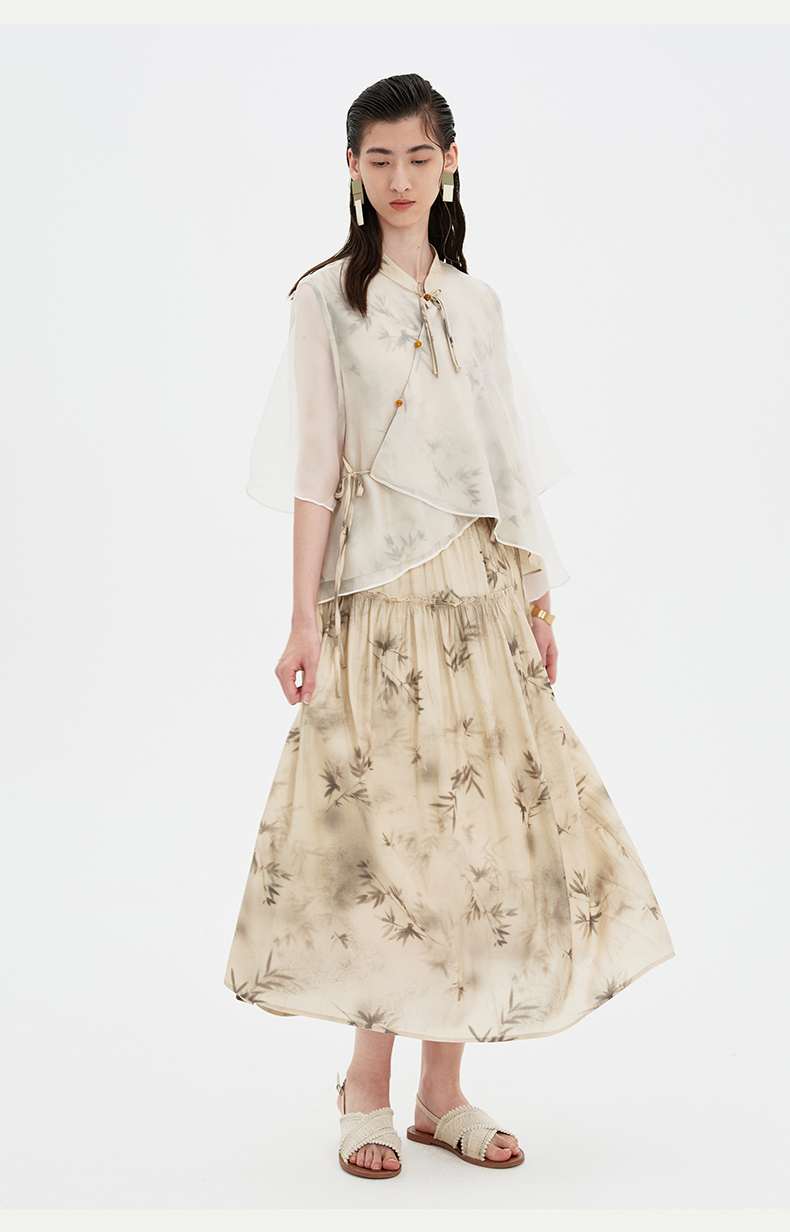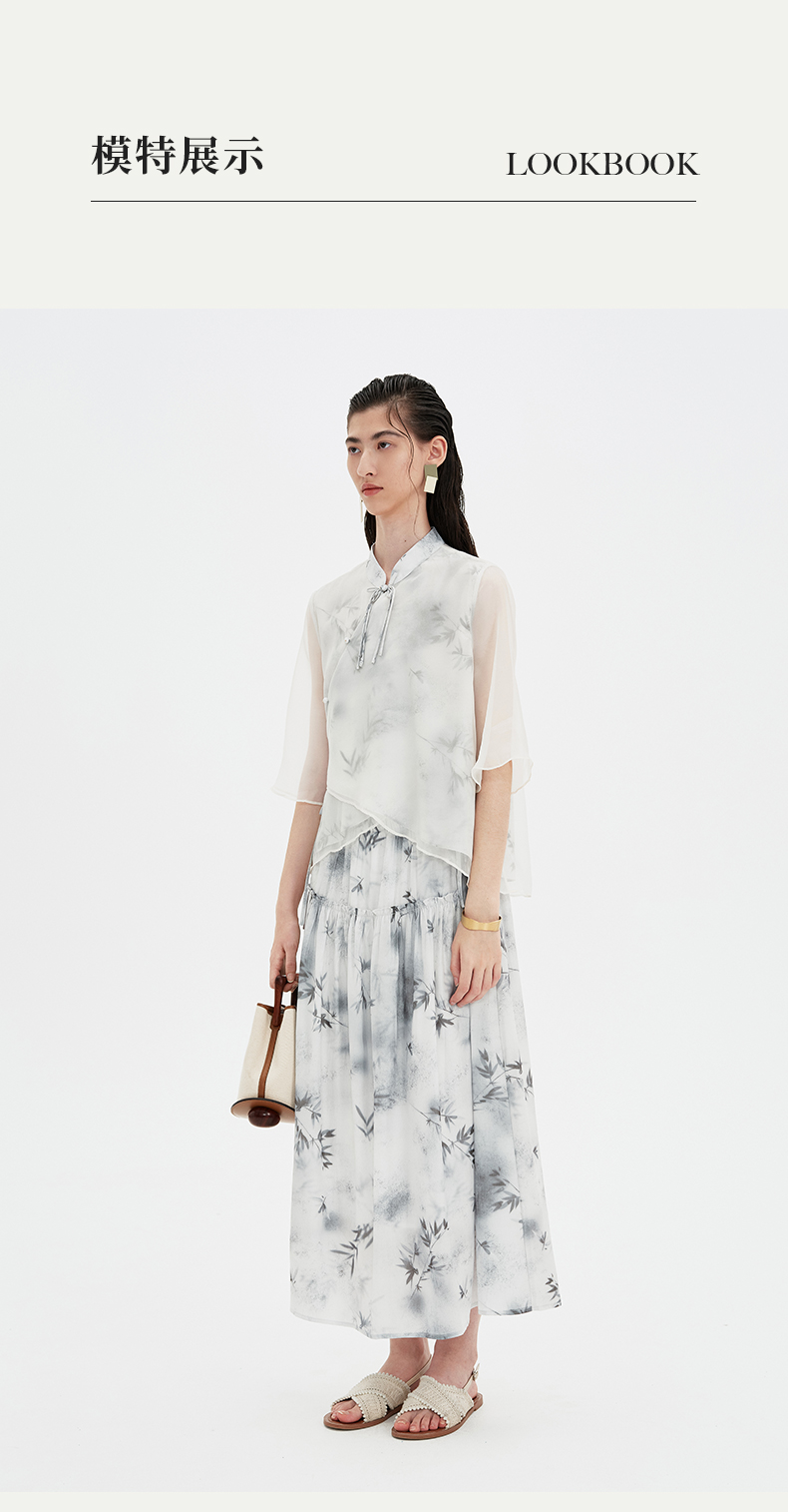 SELFWHO水墨印花新中式衬衫2024女夏国风吸湿透气修身小个子上衣