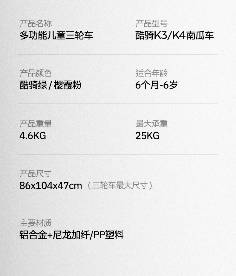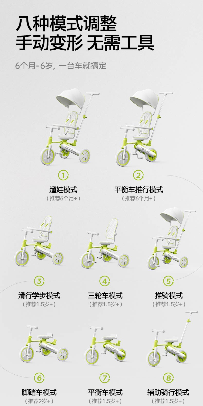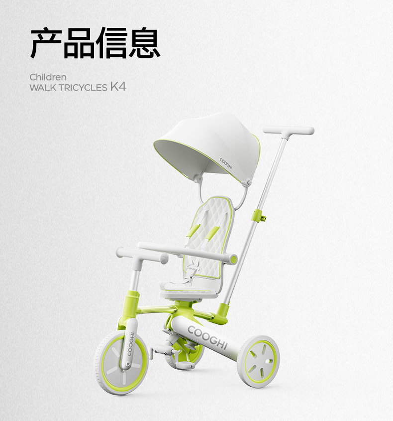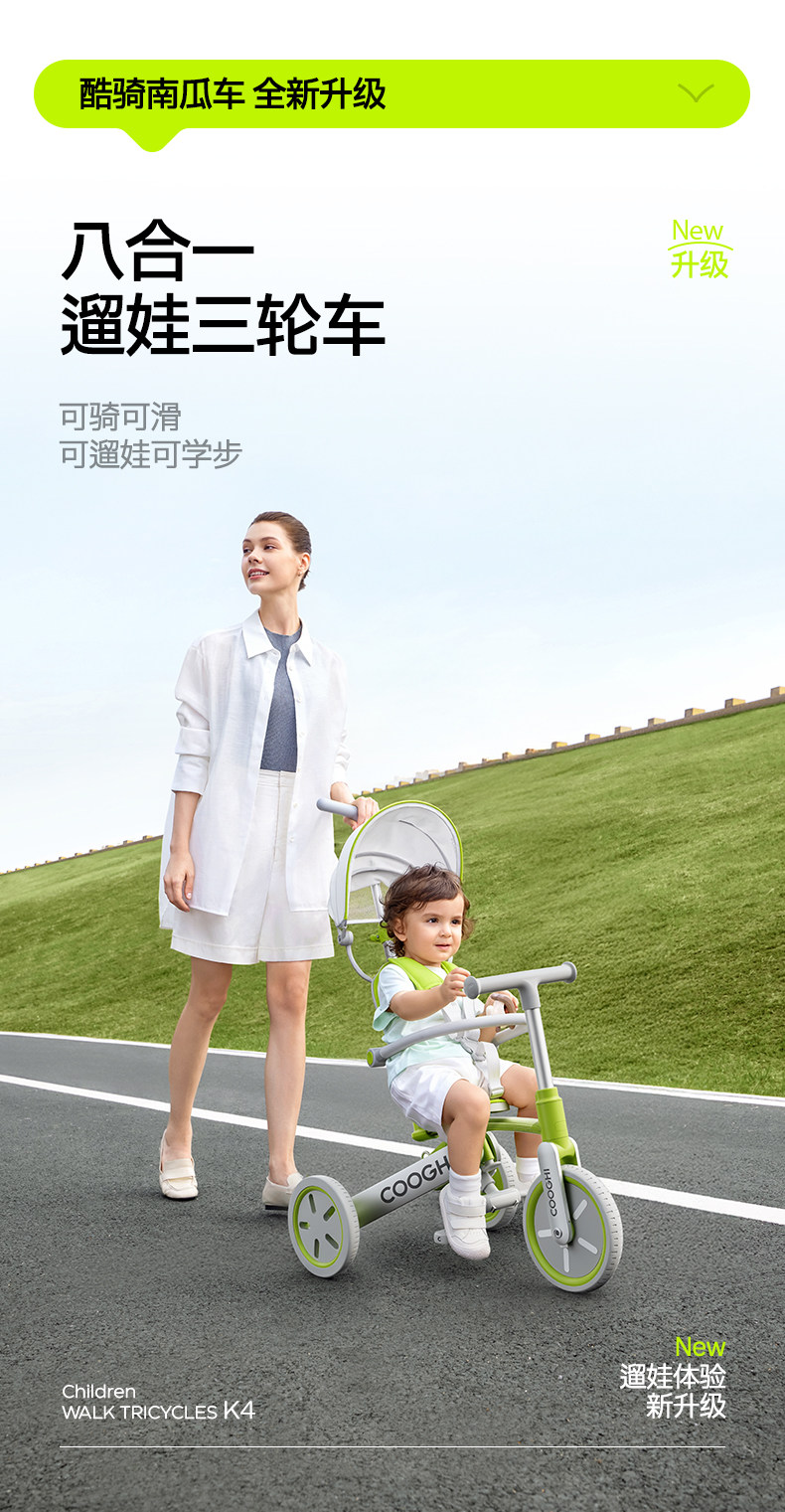 【新品上市】COOGHI酷骑八合一遛娃三轮车K3/K4南瓜车