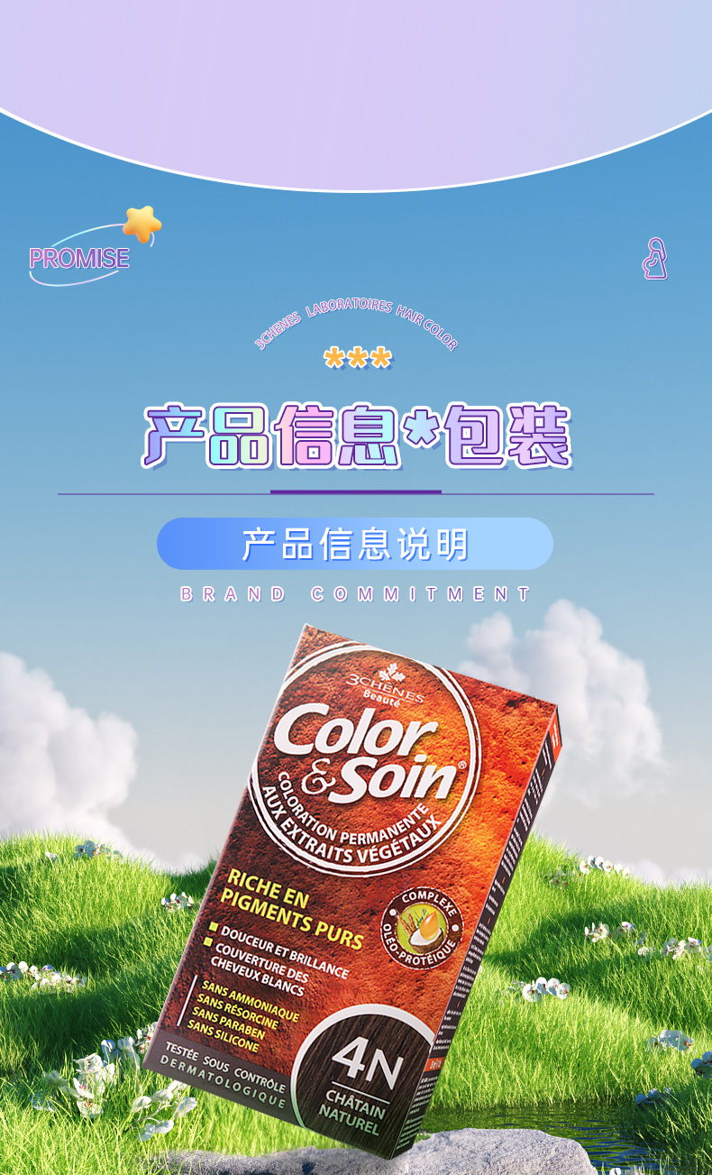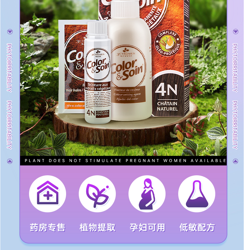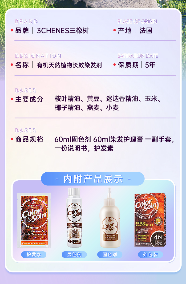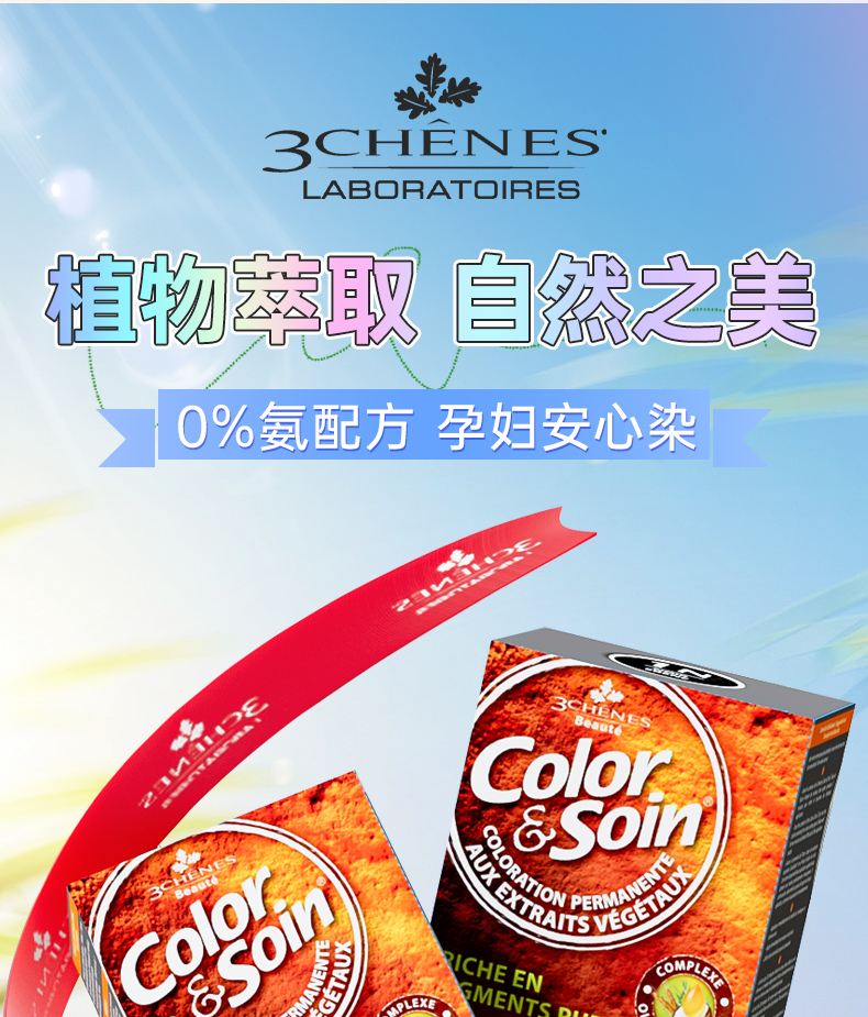 【保税仓】LES3CHENES三橡树天然植物长效染发剂靓淳摩卡6N/5M浅桃栗色/6G暗金黄