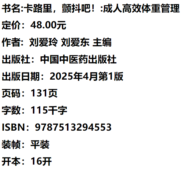 卡路里,颤抖吧!:成人高效体重管理 刘爱玲 刘爱东 主编 中国疾病预防控制中心营养与健康所 编 中国中医药出版社