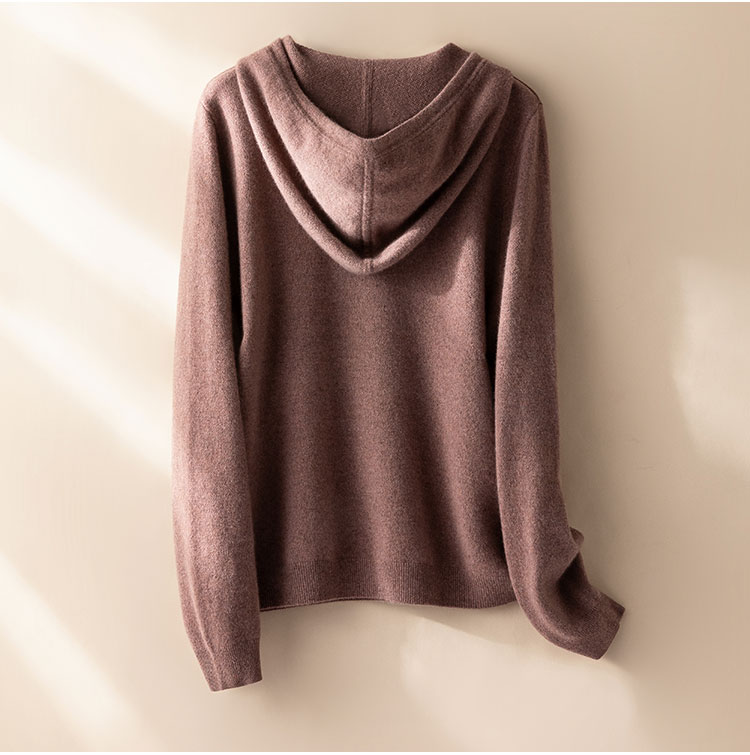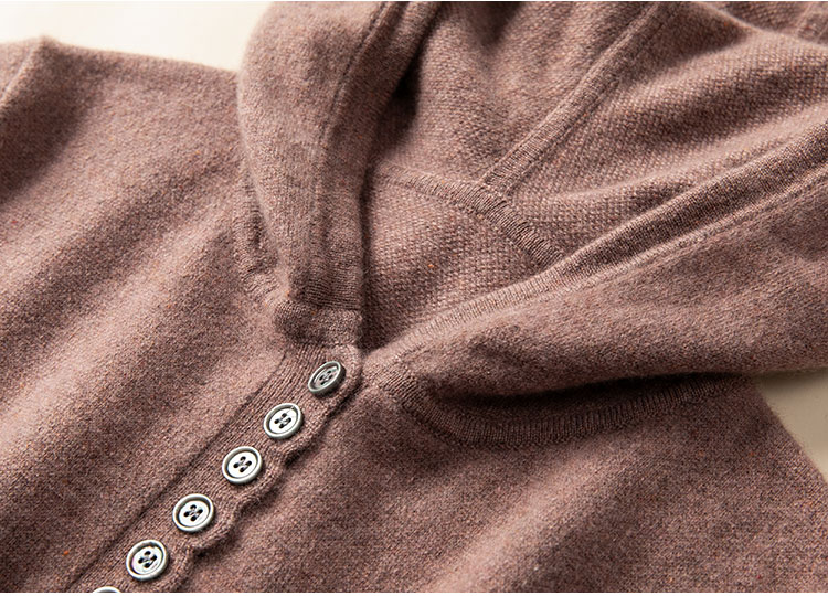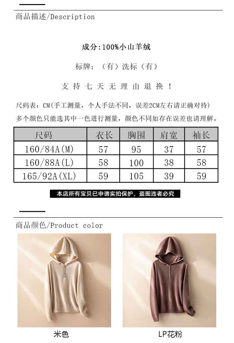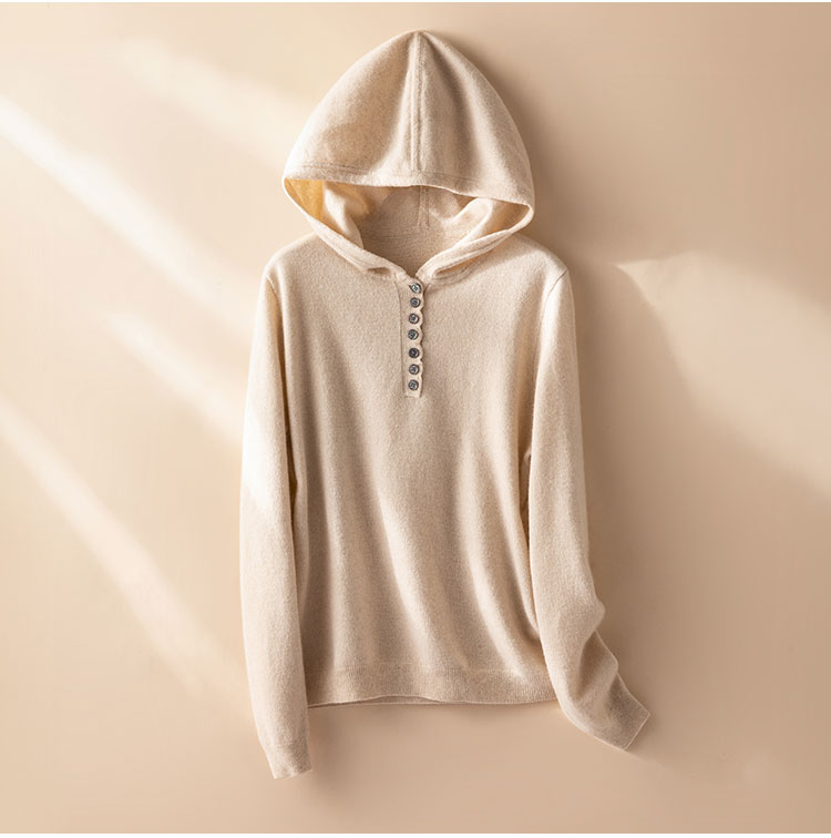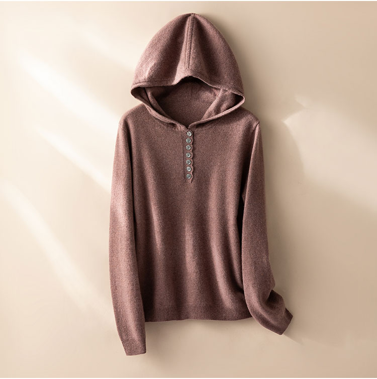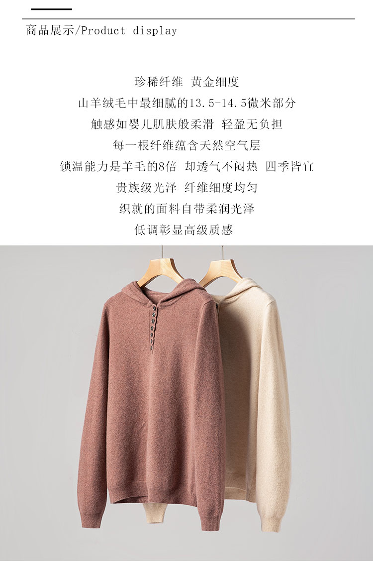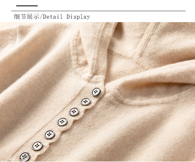 100%Baby小山羊绒~半开扣连帽衫女宽松休闲针织衫BABY260553