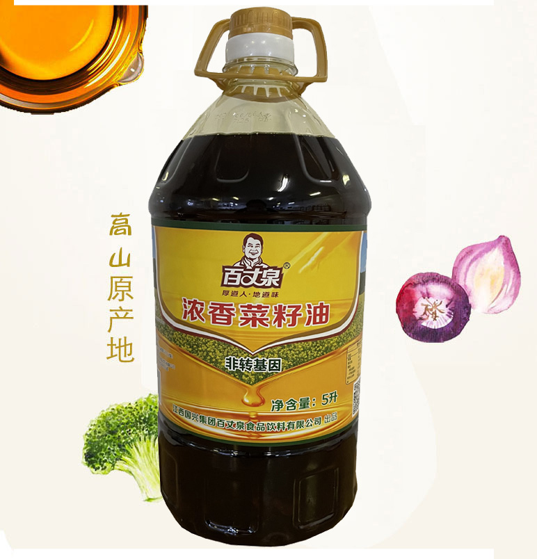 【仅供集采】百丈泉压榨非转菜籽油5L*4桶/件(仅限赣州地区集采)