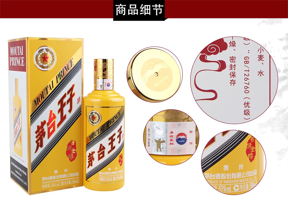 【2022年】茅台王子酒 酱源金樽 53度酱香型白酒 500ml*6瓶 整箱装