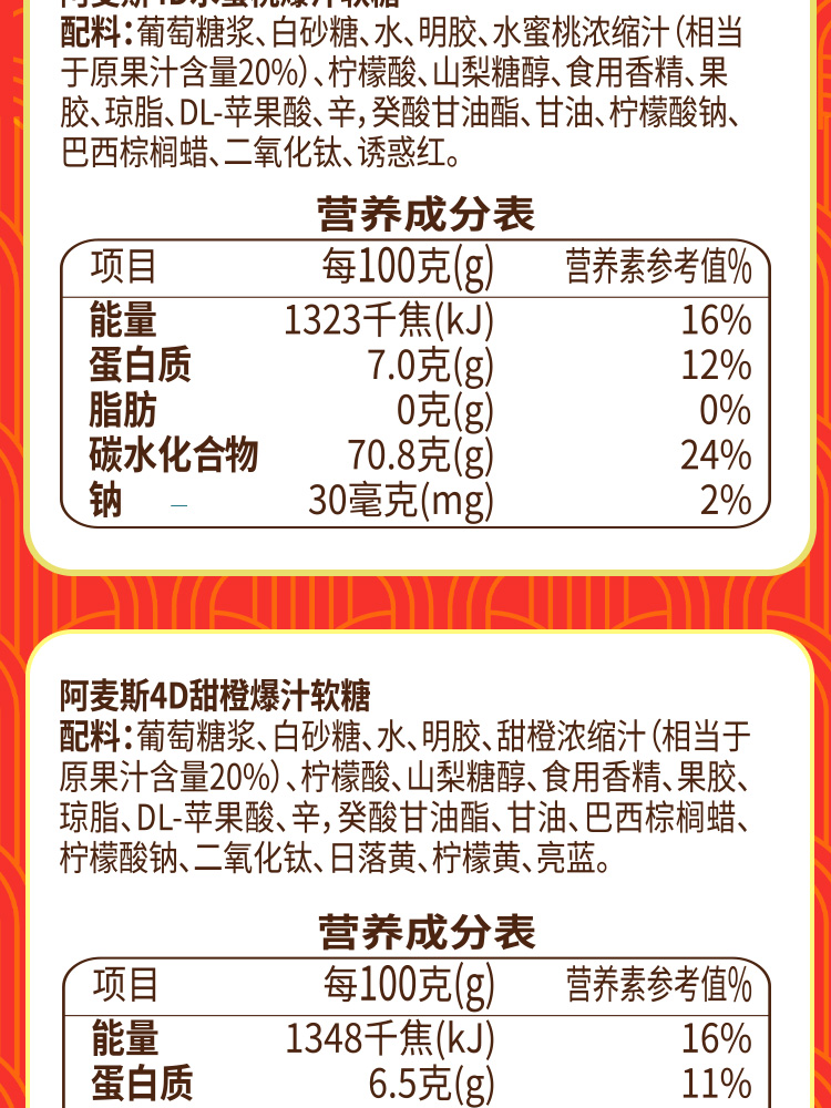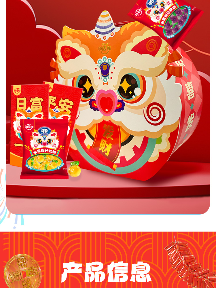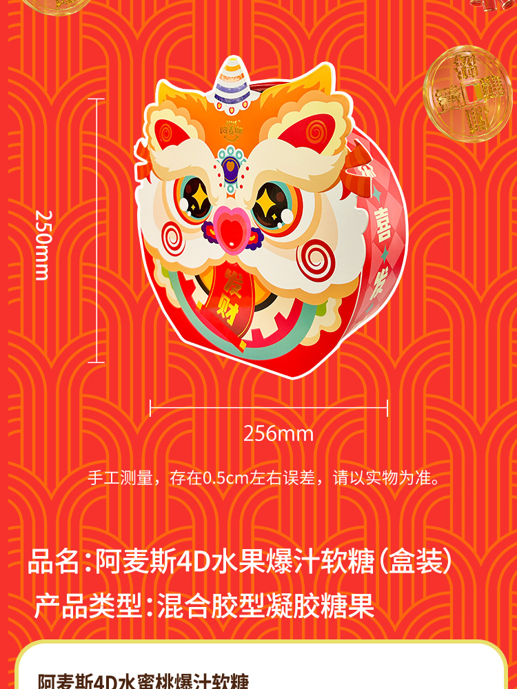 阿麦斯 4D水果爆汁软糖375g--礼盒装