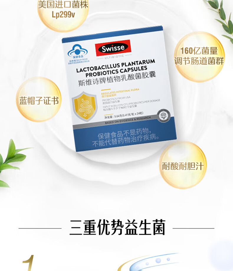 Swisse斯维诗 植物乳酸菌胶囊 0.41g/粒x24粒